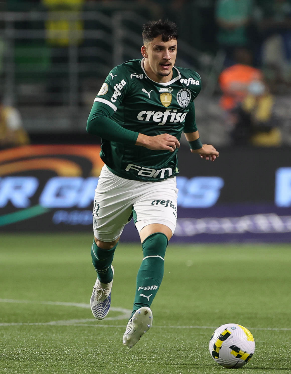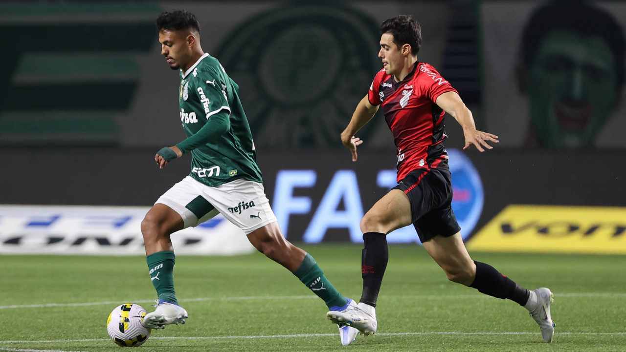 O jogador Gabriel Menino, da SE Palmeiras, em jogo contra a equipe do C Athletico Paranaense, durante partida válida pela décima quinta rodada, do Campeonato Brasileiro, Série A, na arena Allianz Parque. (Foto: Cesar Greco)