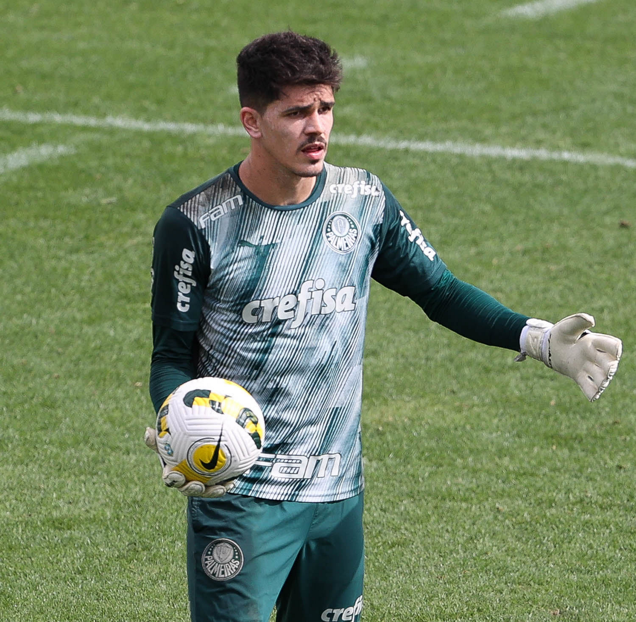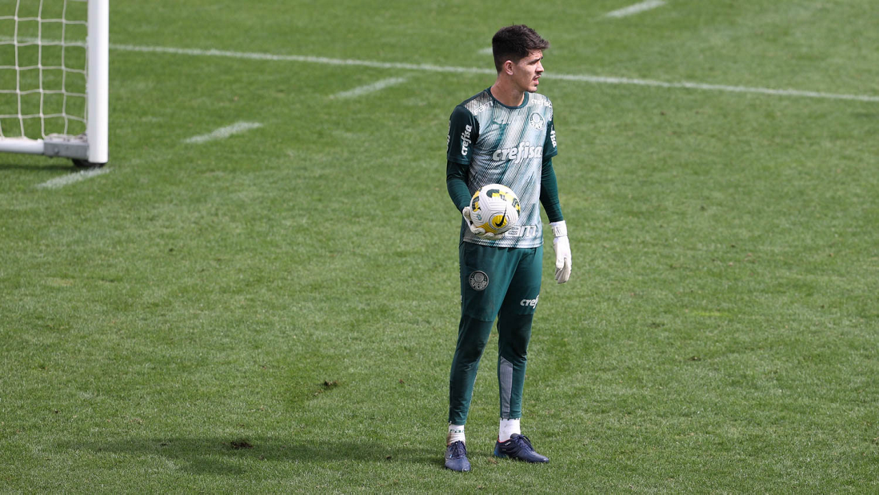 O goleiro Vinicius, da SE Palmeiras, durante treinamento na Academia de Futebol. (Foto: Cesar Greco)
