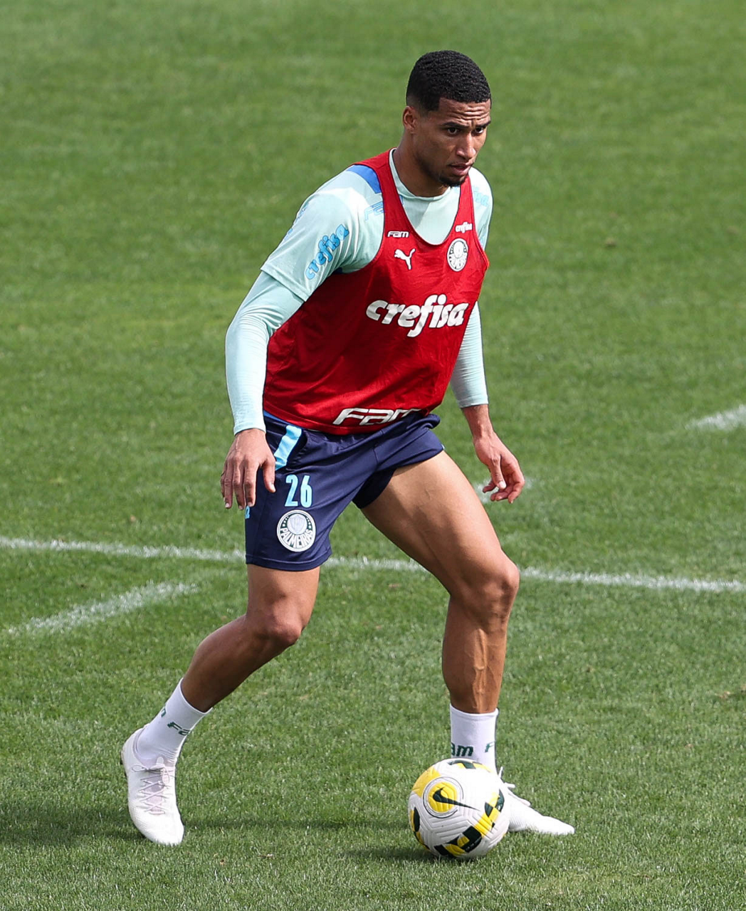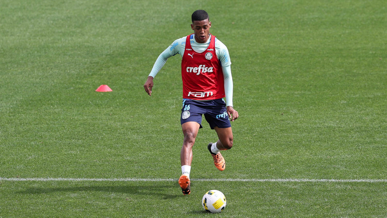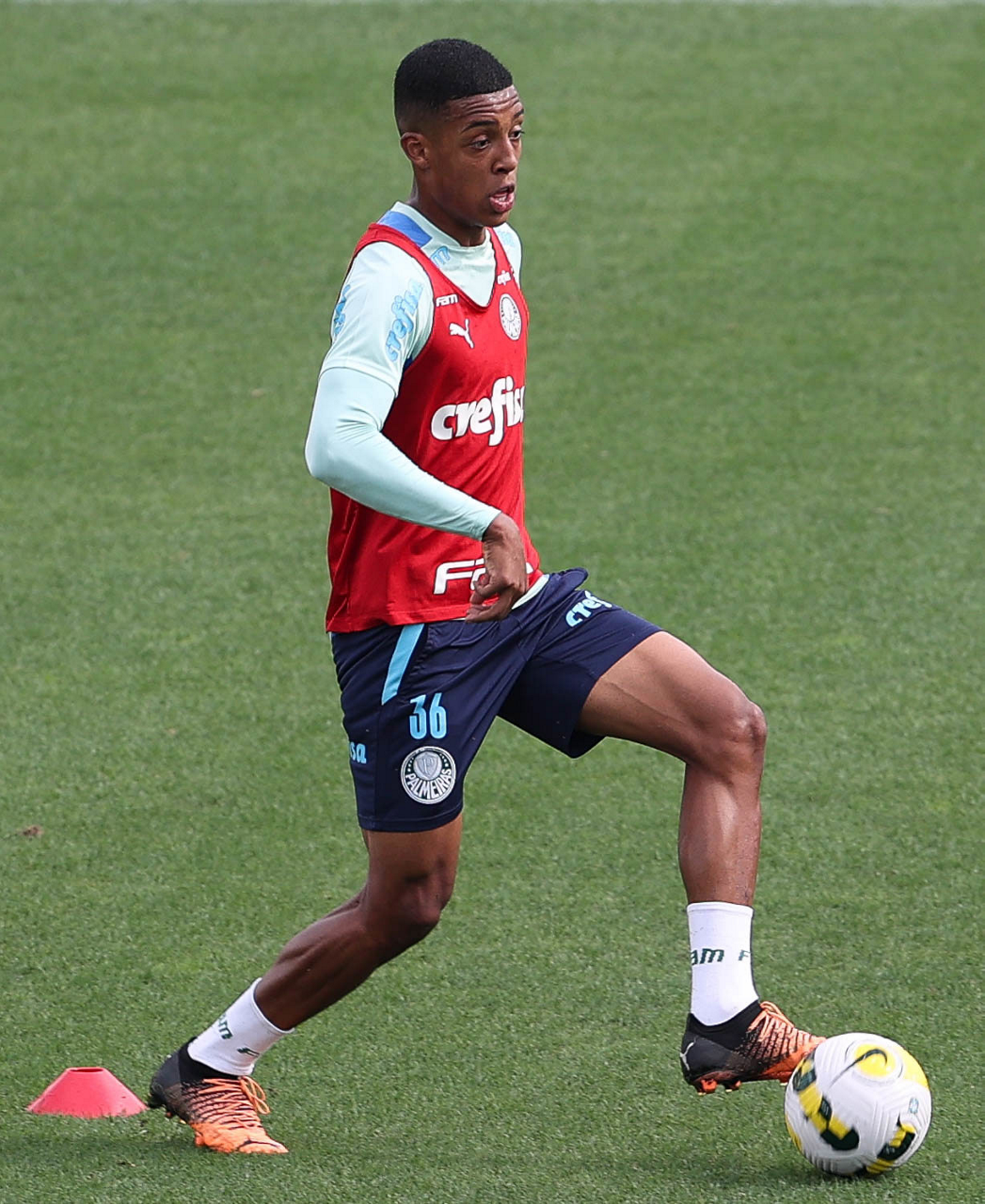 O jogador Gabriel Menino, da SE Palmeiras, durante treinamento na Academia de Futebol. (Foto: Cesar Greco)
