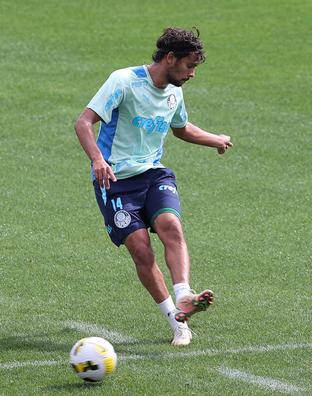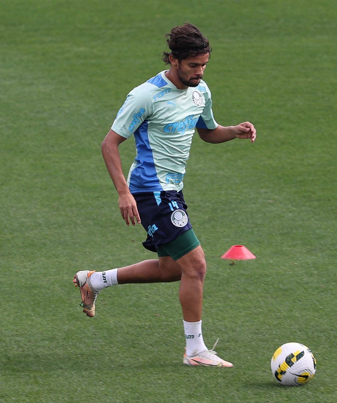 O jogador Gustavo Scarpa, da SE Palmeiras, durante treinamento na Academia de Futebol. (Foto: Cesar Greco)