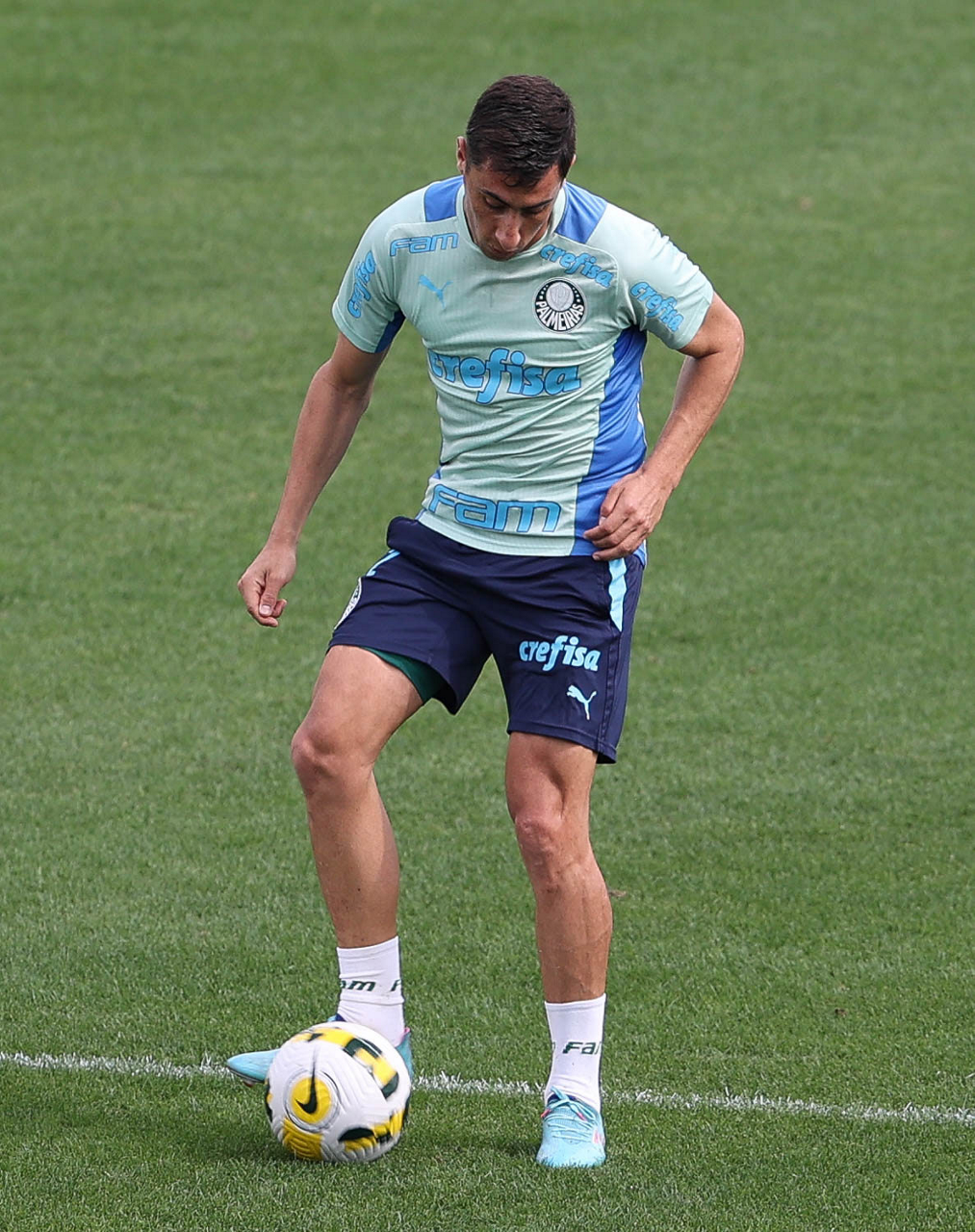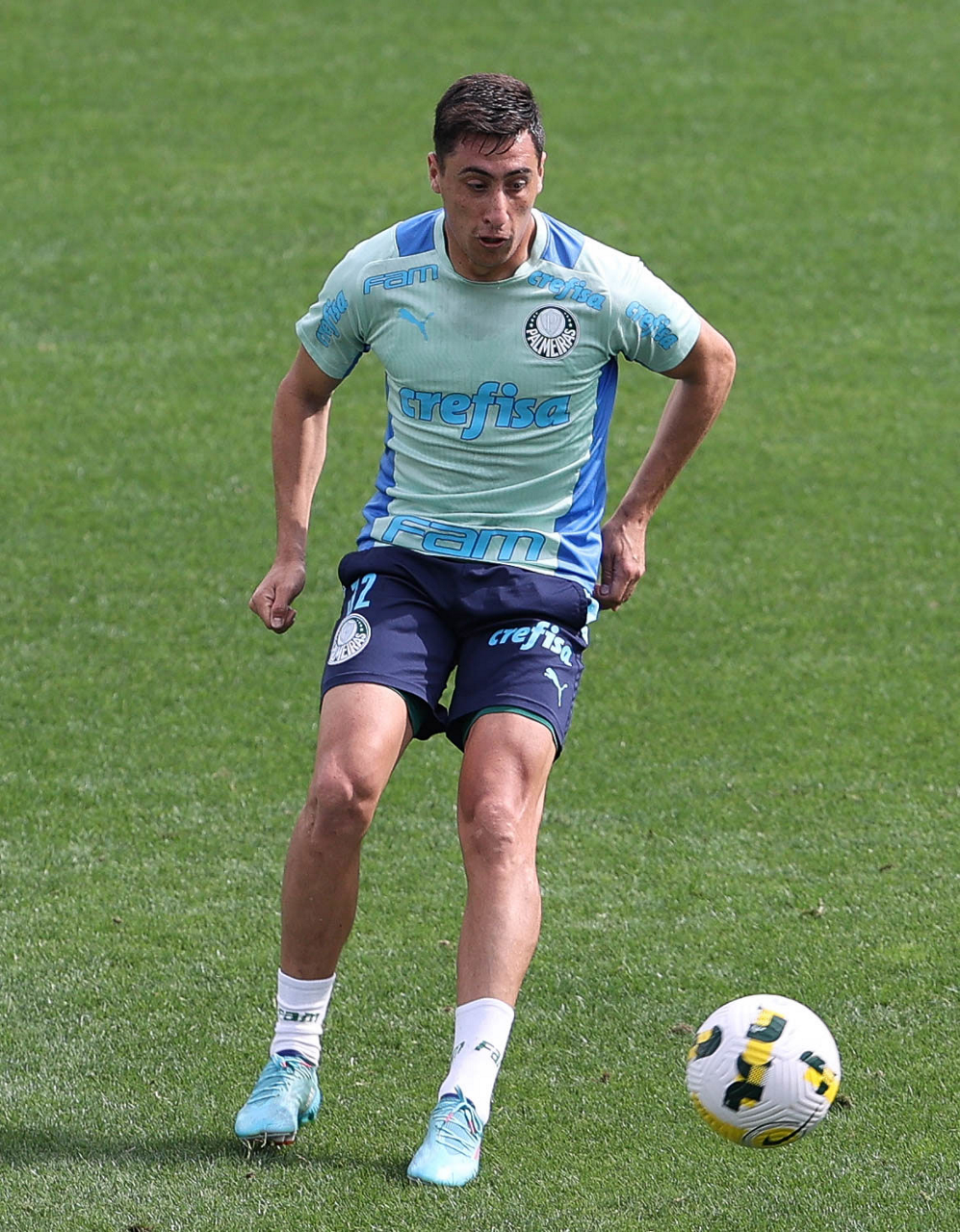 O jogador Miguel Merentiel, da SE Palmeiras, durante treinamento na Academia de Futebol. (Foto: Cesar Greco)