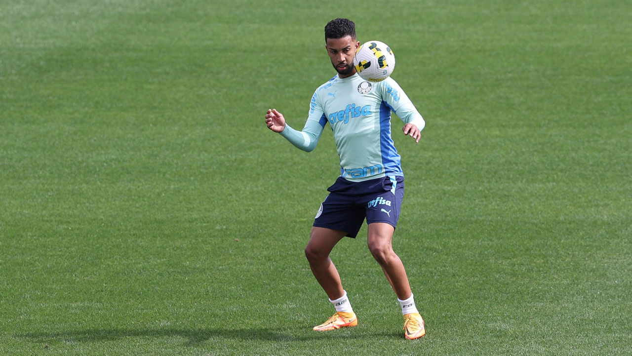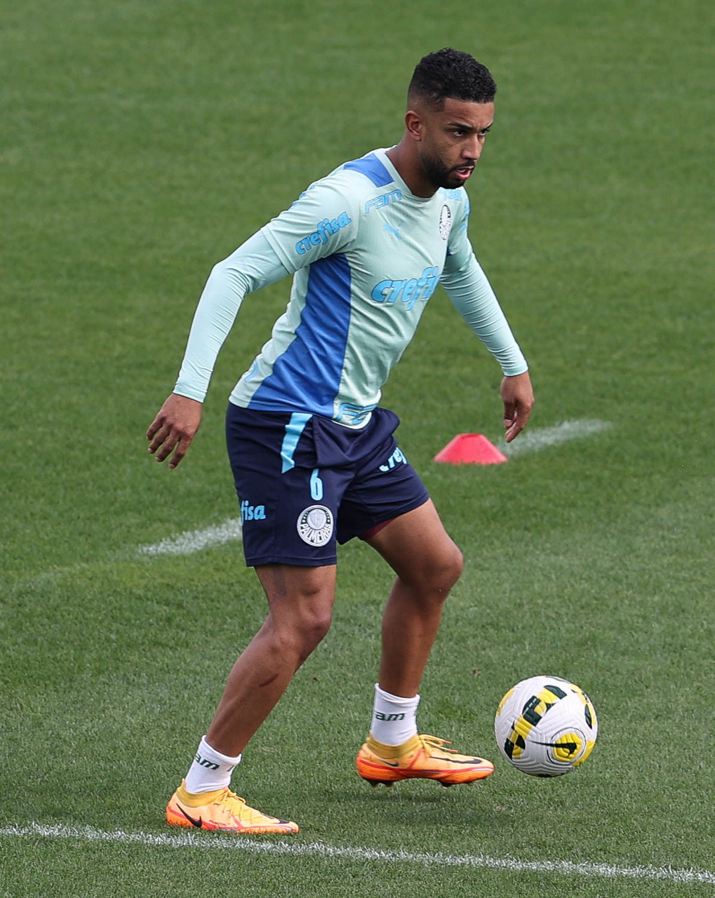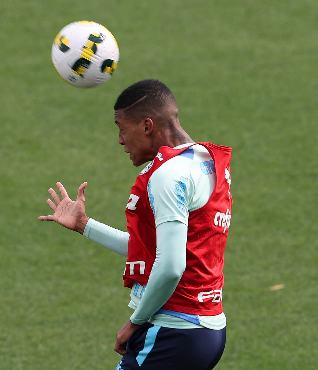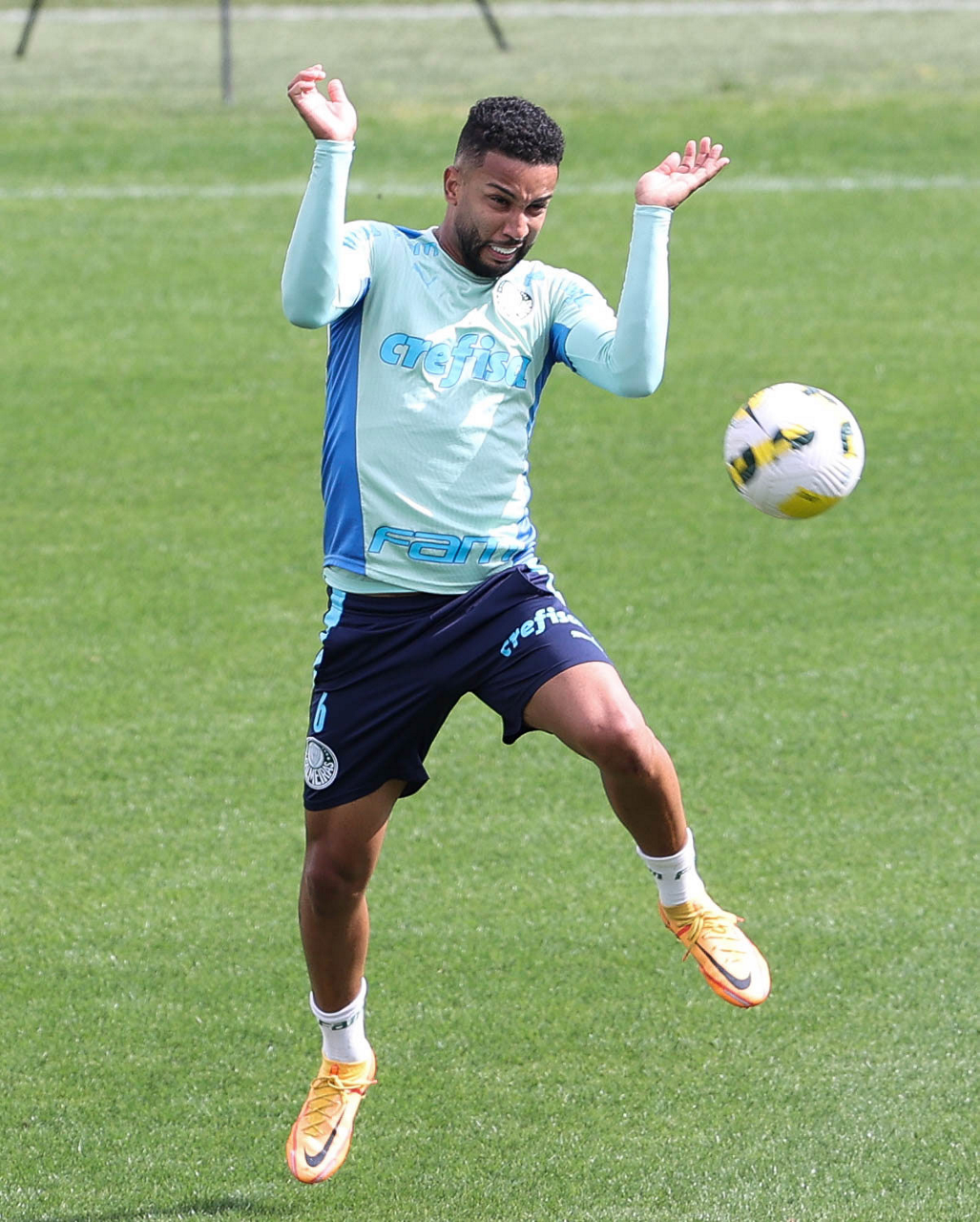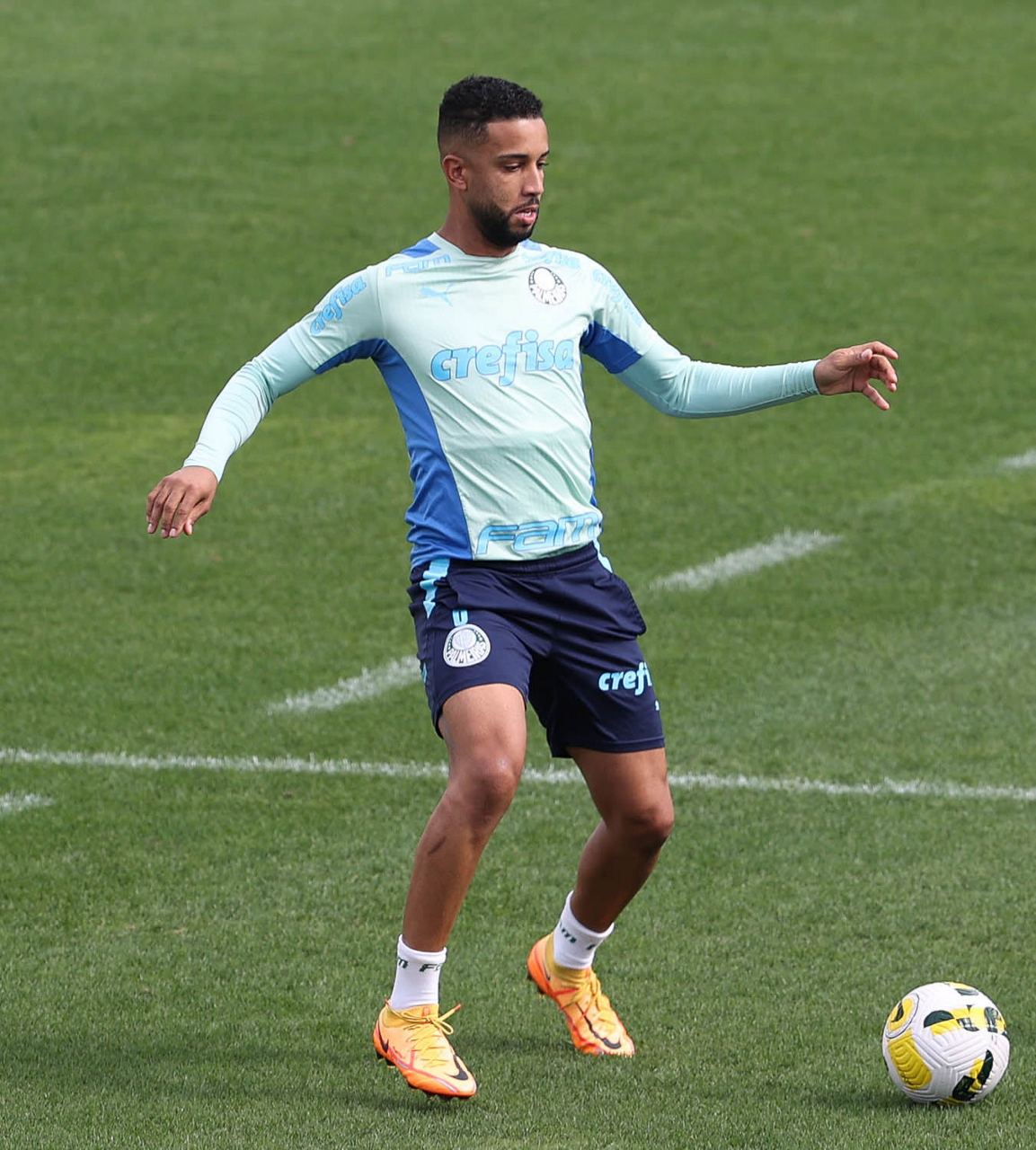 O jogador Fabinho, da SE Palmeiras, durante treinamento na Academia de Futebol. (Foto: Cesar Greco)