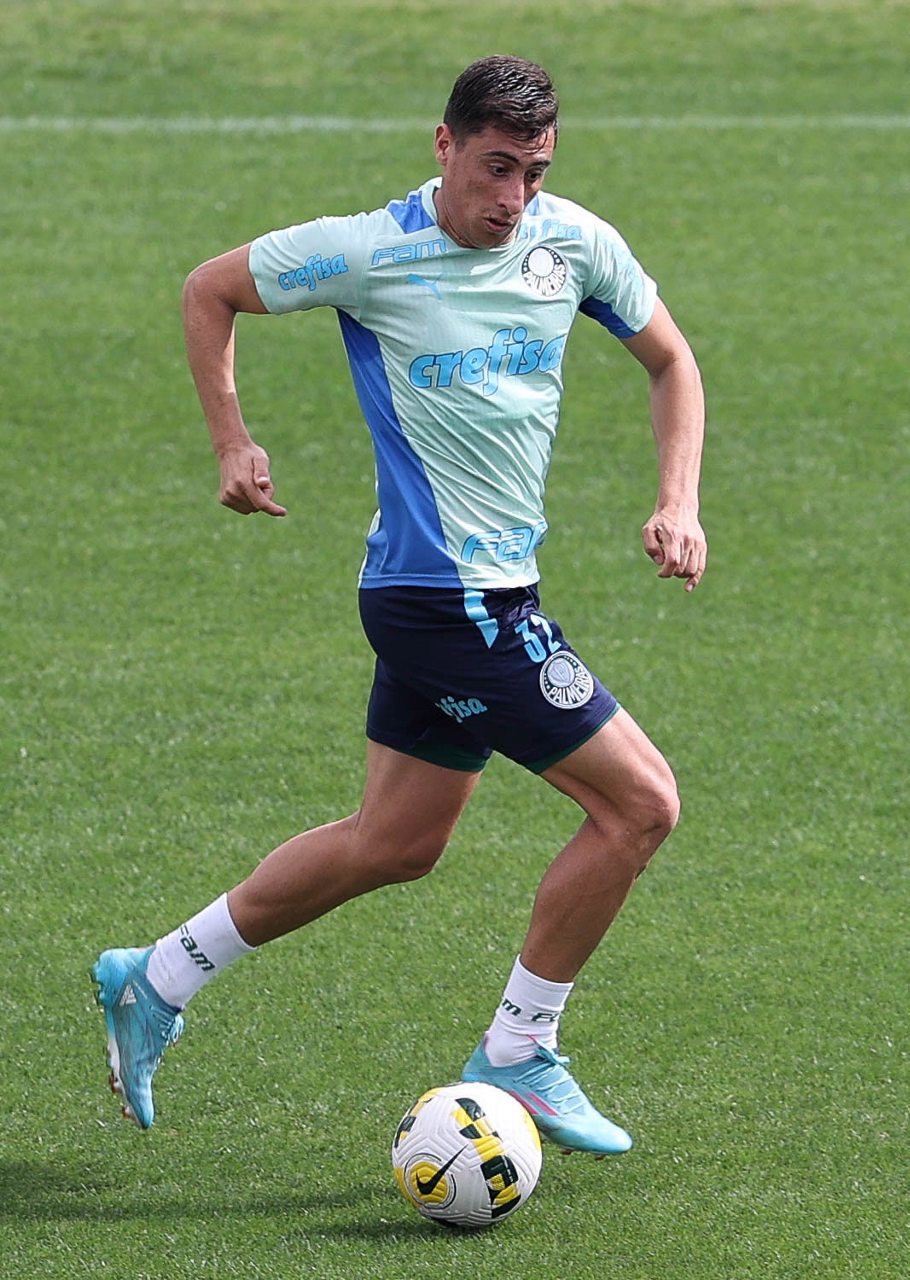 O jogador Benjamín Kuscevic, da SE Palmeiras, durante treinamento na Academia de Futebol. (Foto: Cesar Greco)