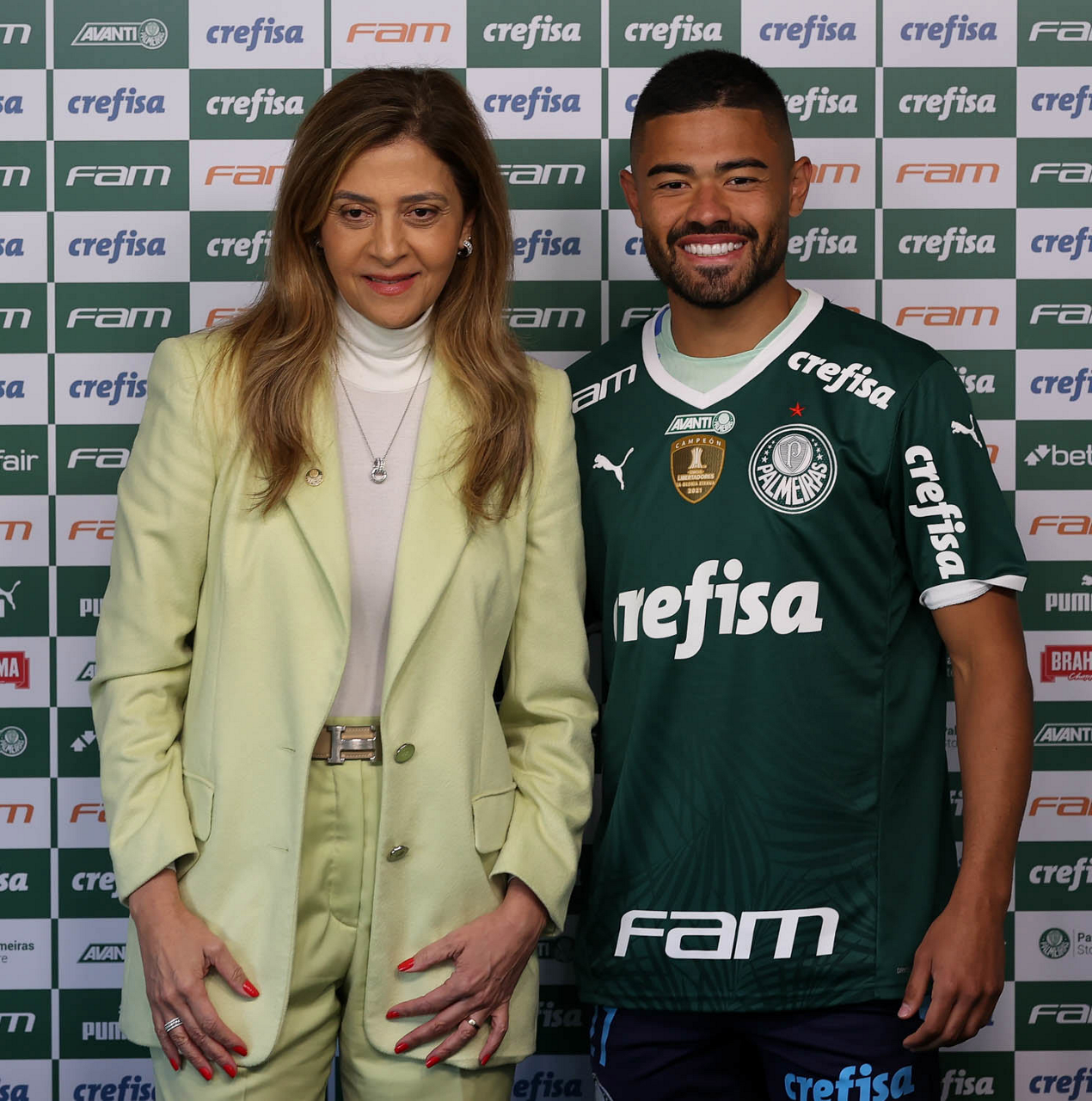 A presidente Leila Pereira, da SE Palmeiras, apresenta o mais novo atleta do clube, Bruno tabata, na Academia de Futebol. (Foto: Cesar Greco)