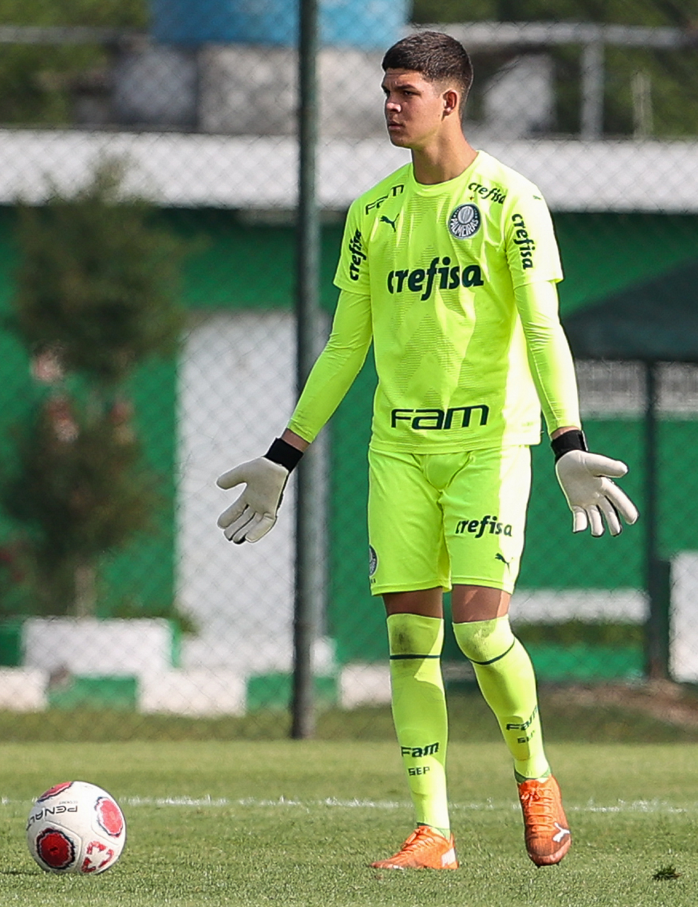 Partida entre Palmeiras e União São João , válida pela sexta rodada da segunda fase do Campeonato Paulista Sub-15, na Academia de Futebol 2, em Guarulhos-SP. (Foto: Fabio Menotti)