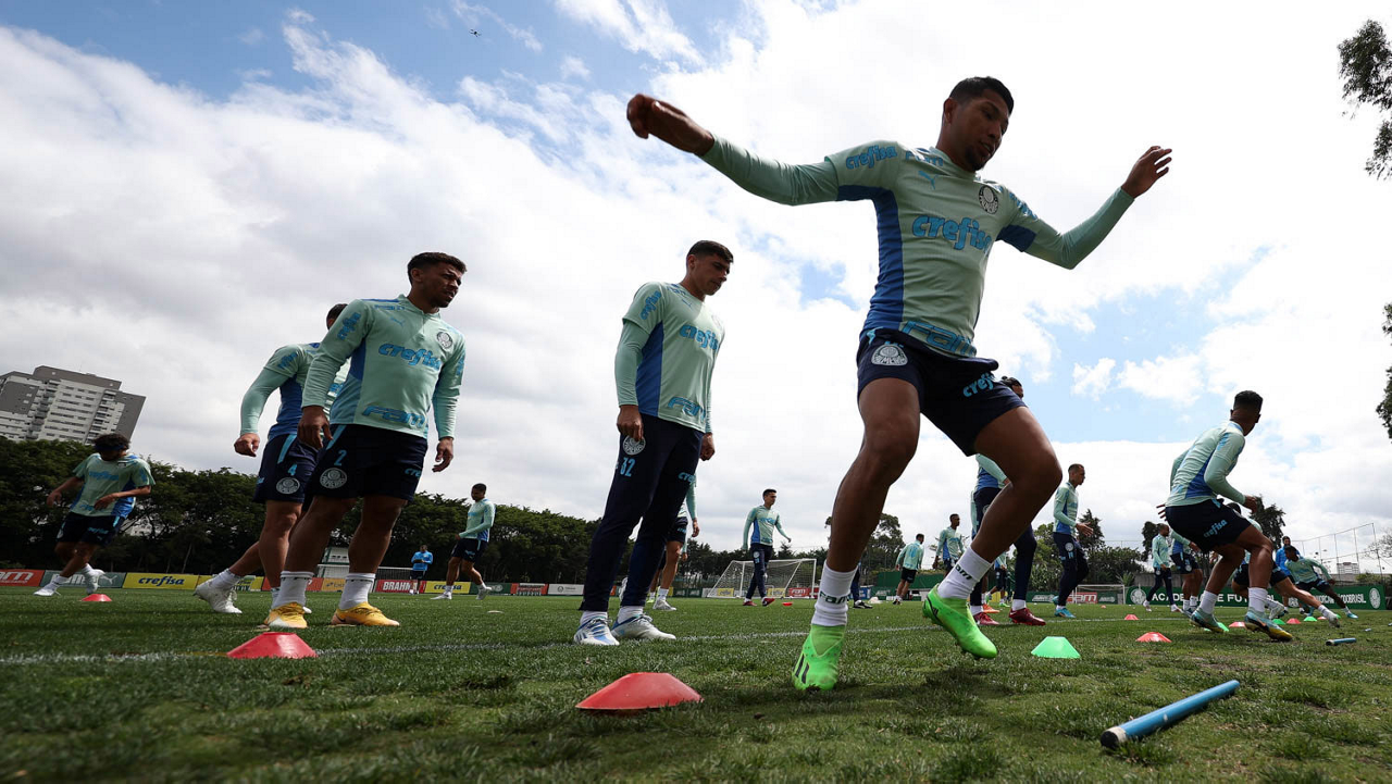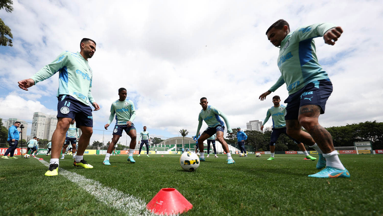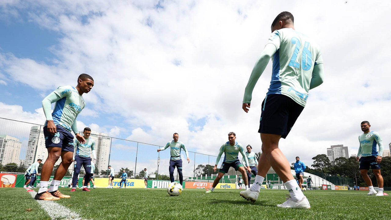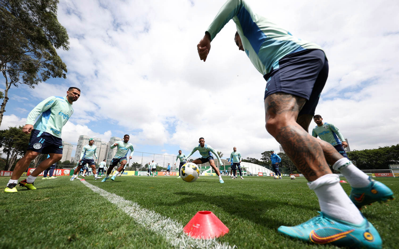 Os jogadores da SE Palmeiras, durante treinamento, na Academia de Futebol. (Foto: Cesar Greco)