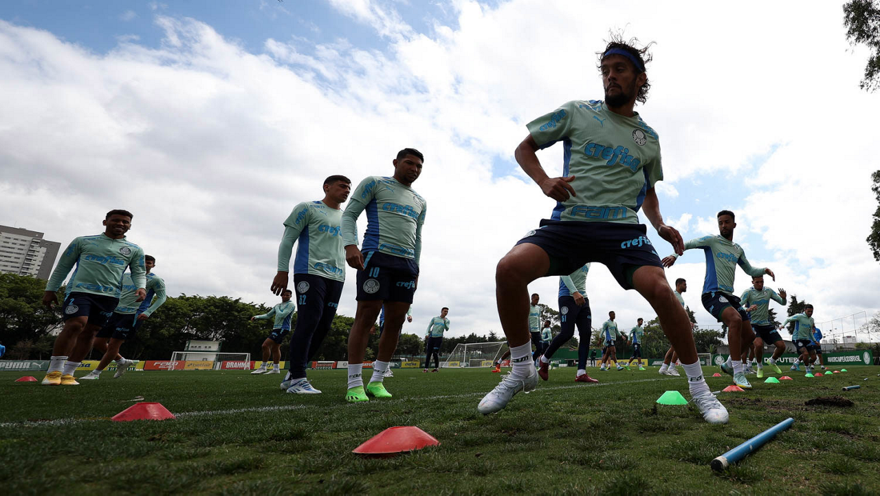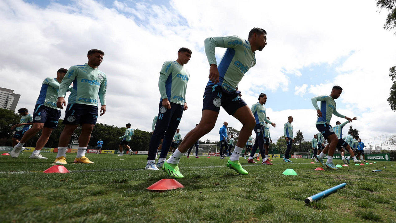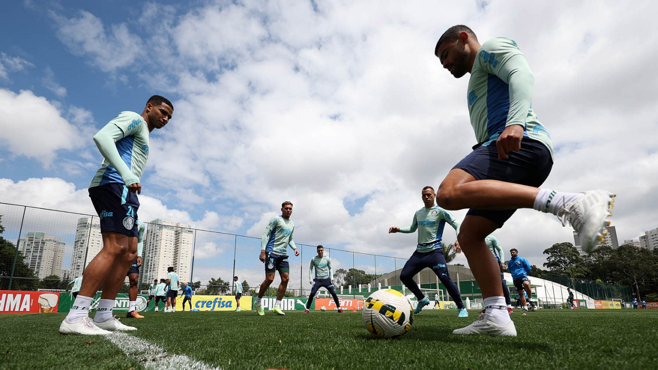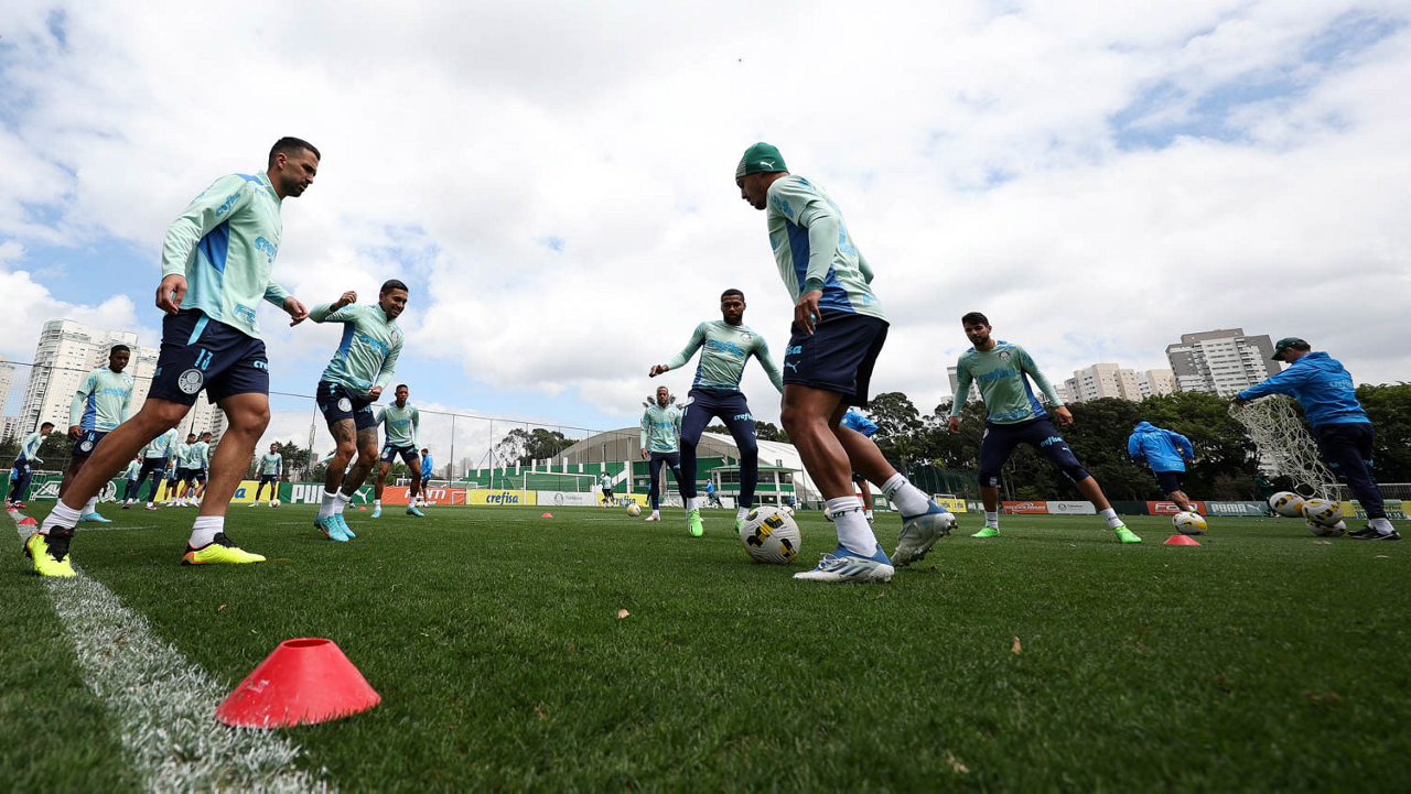 Os jogadores da SE Palmeiras, durante treinamento, na Academia de Futebol. (Foto: Cesar Greco)