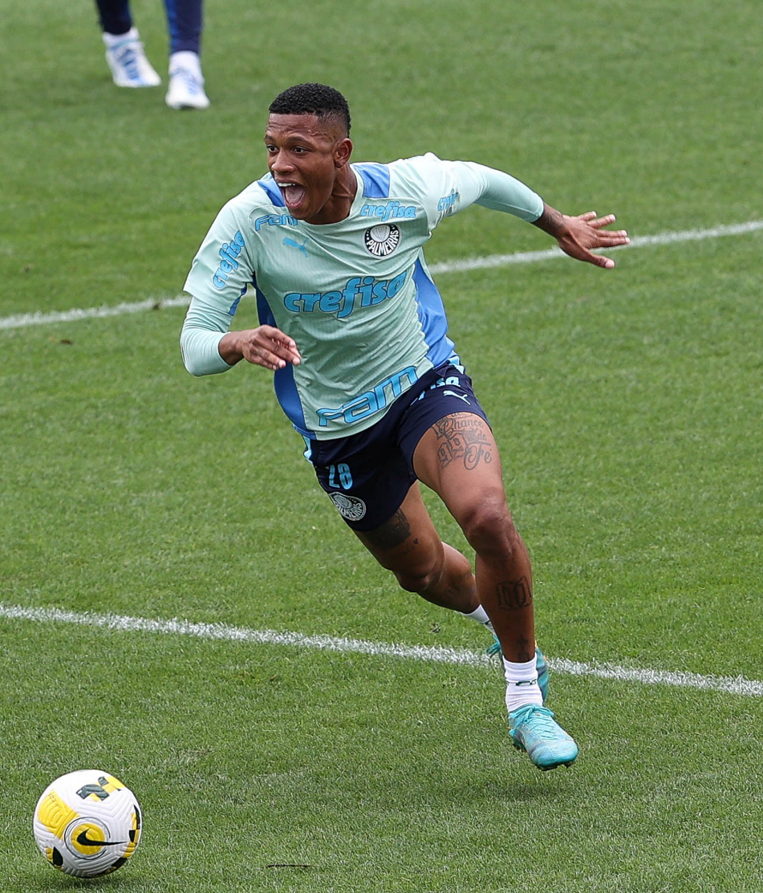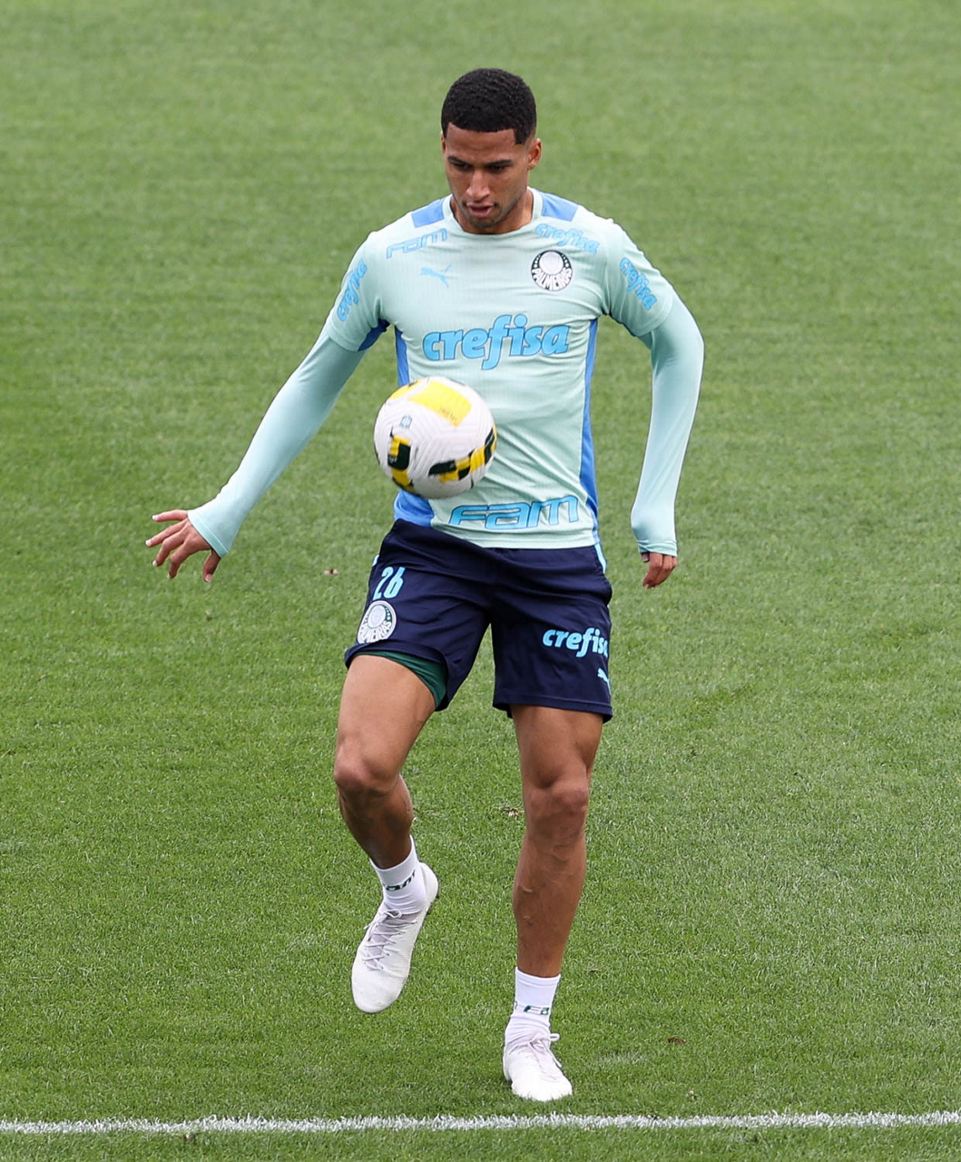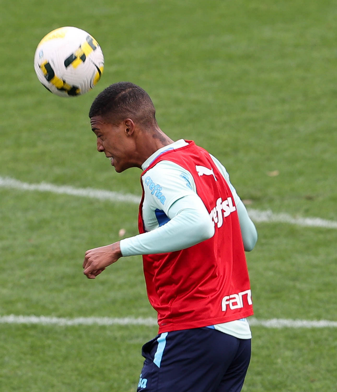 O jogador Gabriel Menino, da SE Palmeiras, durante treinamento, na Academia de Futebol. (Foto: Cesar Greco)