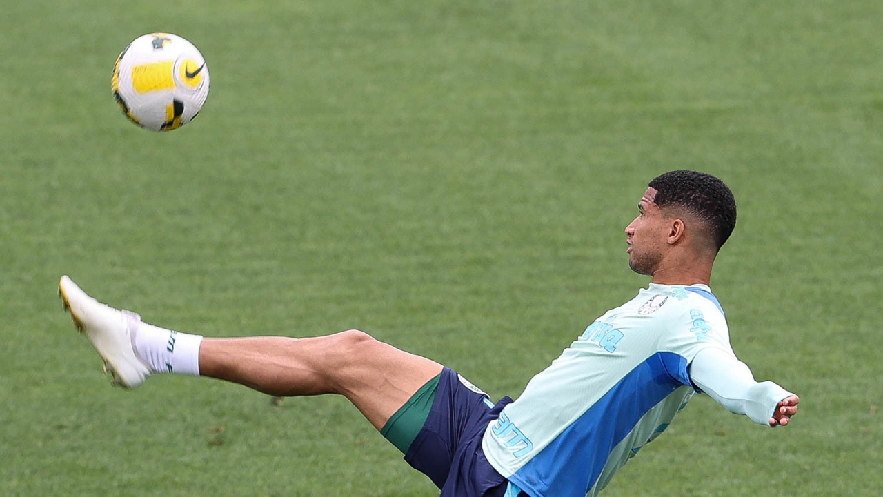 O jogador Miguel Merentiel, da SE Palmeiras, durante treinamento, na Academia de Futebol. (Foto: Cesar Greco)