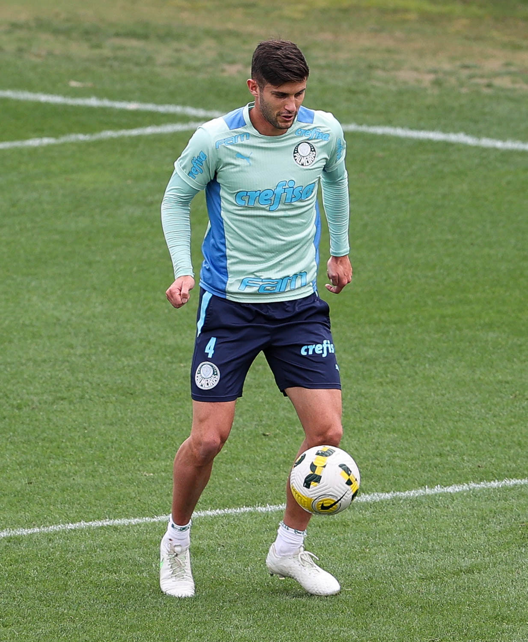 O jogador Joaquín Piquerez, da SE Palmeiras, durante treinamento, na Academia de Futebol. (Foto: Cesar Greco)