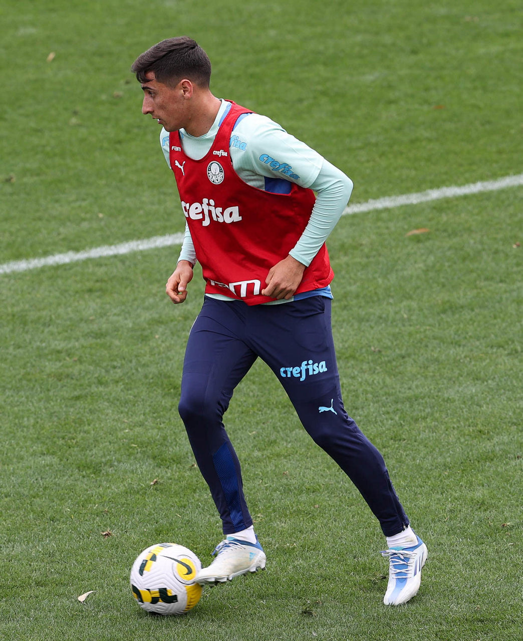 O jogador Benjamín Kuscevic, da SE Palmeiras, durante treinamento, na Academia de Futebol. (Foto: Cesar Greco)