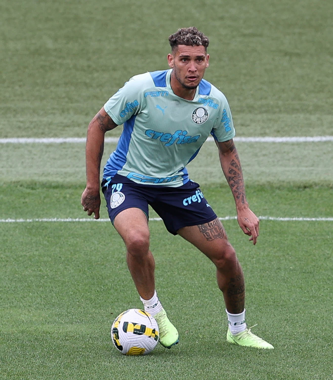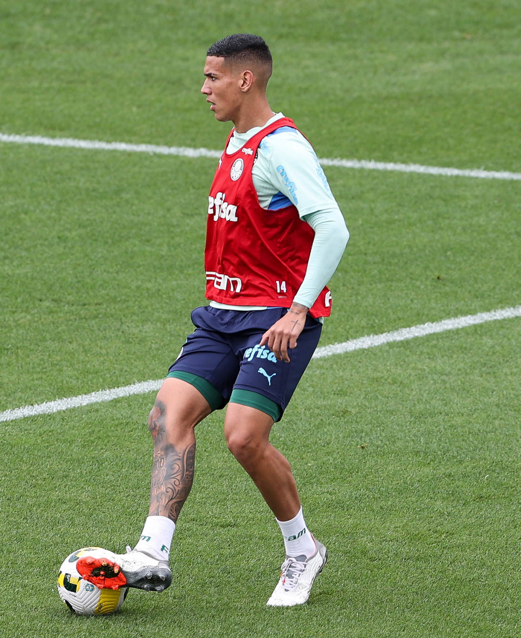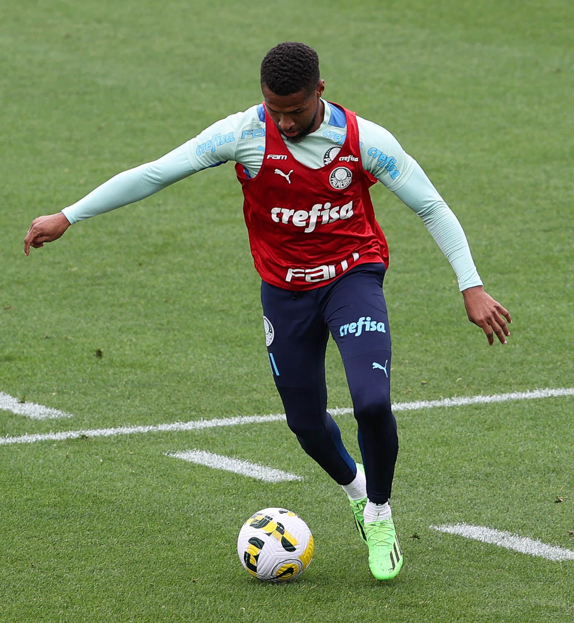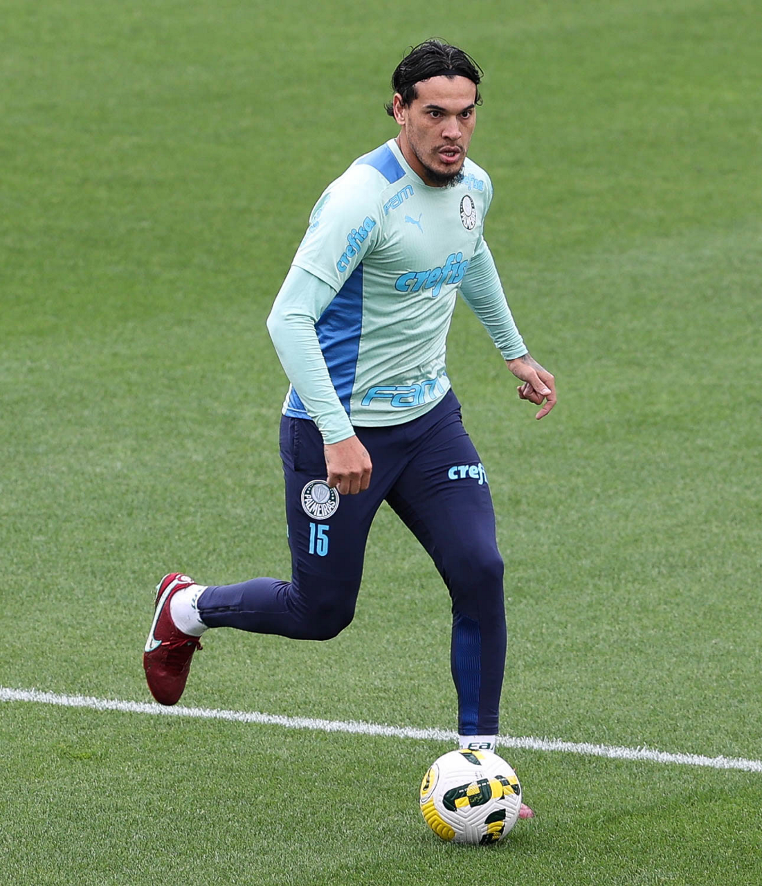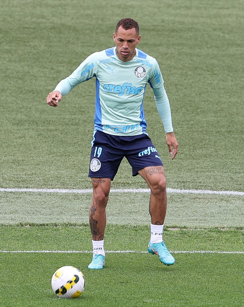 O preparador de goleiro Thales Damasceno, os goleiros Marcelo Lomba, Luis, Vinicius e Nathan (E/D em pé) e o preparador de goleiro Rogerio Godoy e o goleiro Weverton (D agachado), da SE Palmeiras, durante treinamento, na Academia de Futebol. (Foto: Cesar Greco)