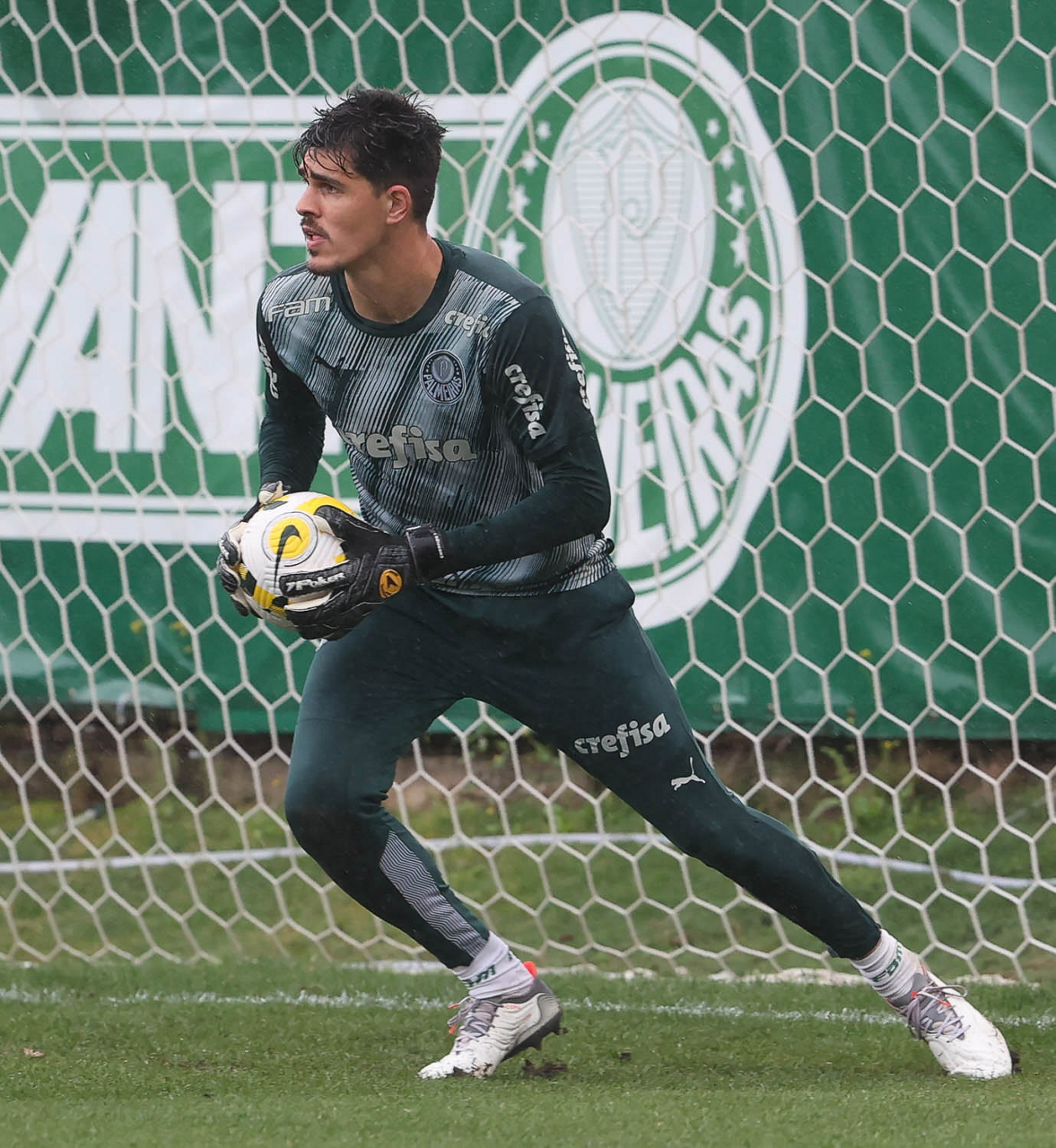 O goleiro Vinicius, da SE Palmeiras, durante treinamento, na Academia de Futebol. (Foto: Cesar Greco)
