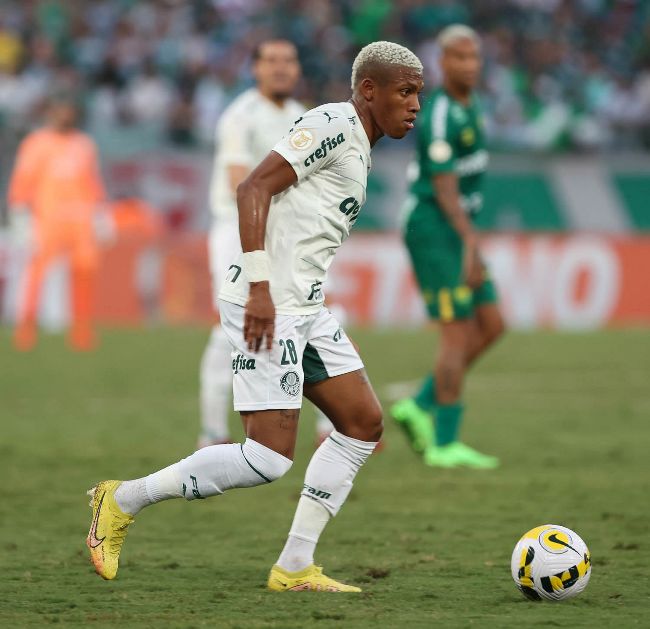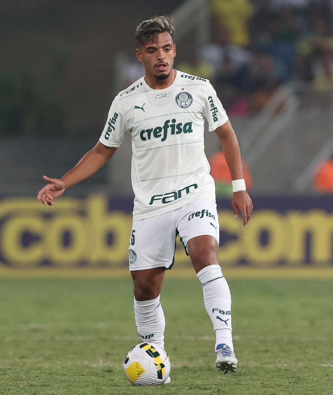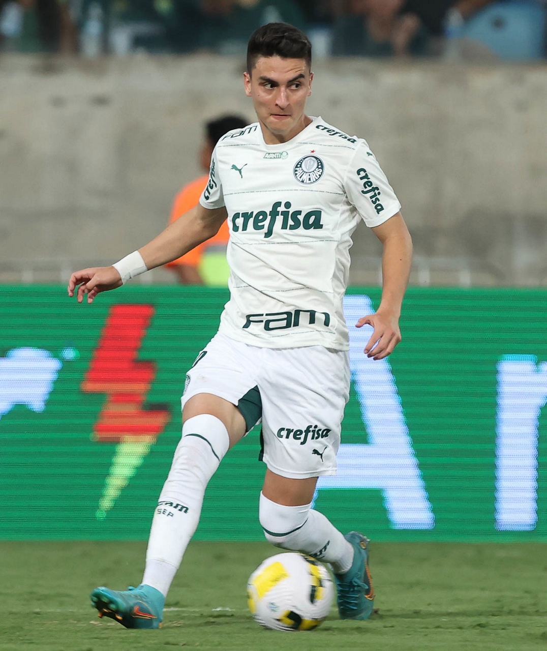 O jogador Gabriel Menino, da SE Palmeiras, em jogo contra a equipe do Cuiabá EC, durante partida válida pela trigésima sexta rodada, do Campeonato Brasileiro, Série A, na Arena Pantanal. (Foto: Cesar Greco/Palmeiras/by Canon)