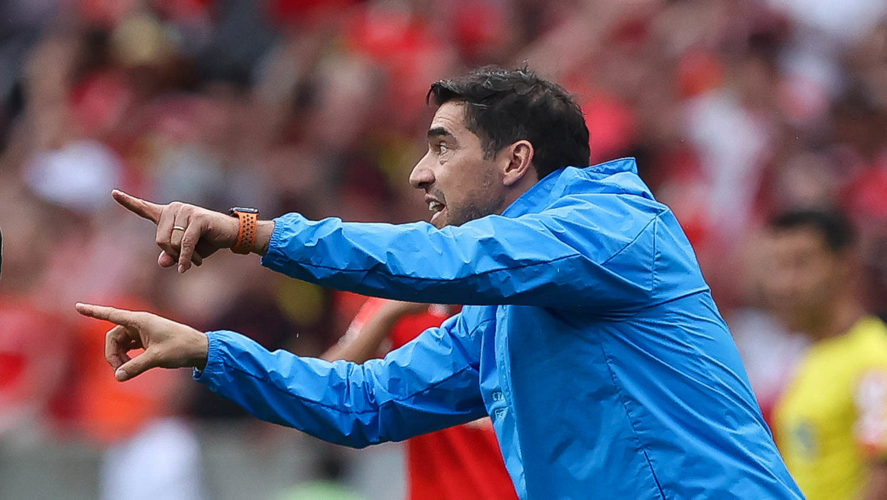 O técnico Abel Ferreira, da SE Palmeiras, em jogo contra a equipe do SC Internacional, durante partida válida pela trigésima oitava rodada, do Campeonato Brasileiro, Série A, no estádio Beira-Rio. (Foto: Cesar Greco/Palmeiras/by Canon)