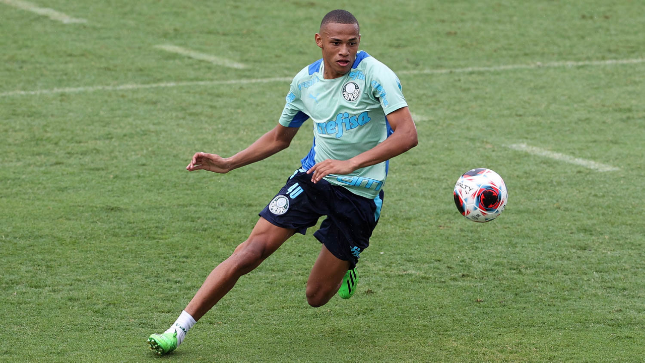 O jogador Gabriel Menino, da SE Palmeiras, durante treinamento, na Academia de Futebol. (Foto: Cesar Greco/Palmeiras/by Canon)