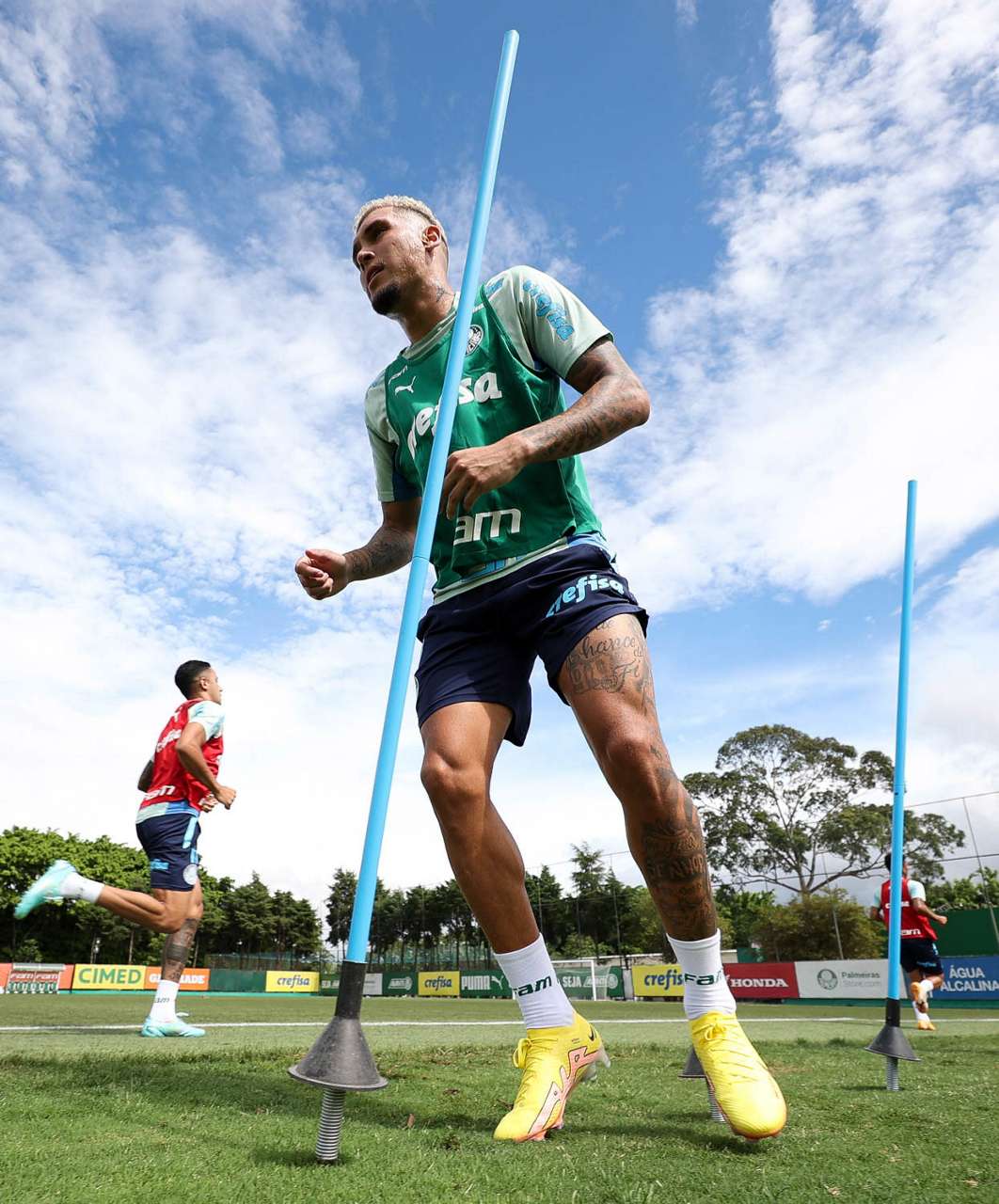 O jogador Endrick, da SE Palmeiras, durante treinamento, na Academia de Futebol. (Foto: Cesar Greco/Palmeiras/by Canon)