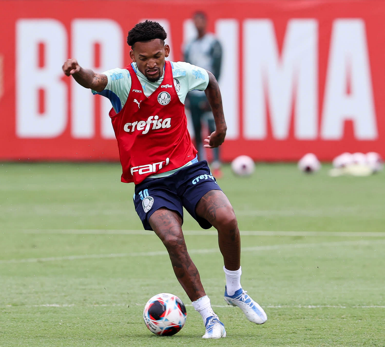 O jogador Endrick, da SE Palmeiras, durante treinamento, na Academia de Futebol. (Foto: Cesar Greco/Palmeiras/by Canon)