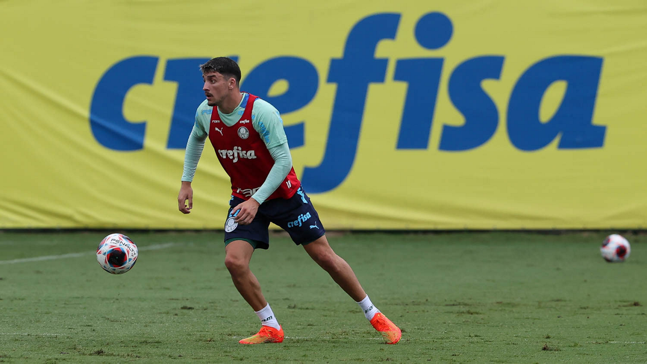 O jogador Gabriel Menino, da SE Palmeiras, durante treinamento, na Academia de Futebol. (Foto: Cesar Greco/Palmeiras/by Canon)