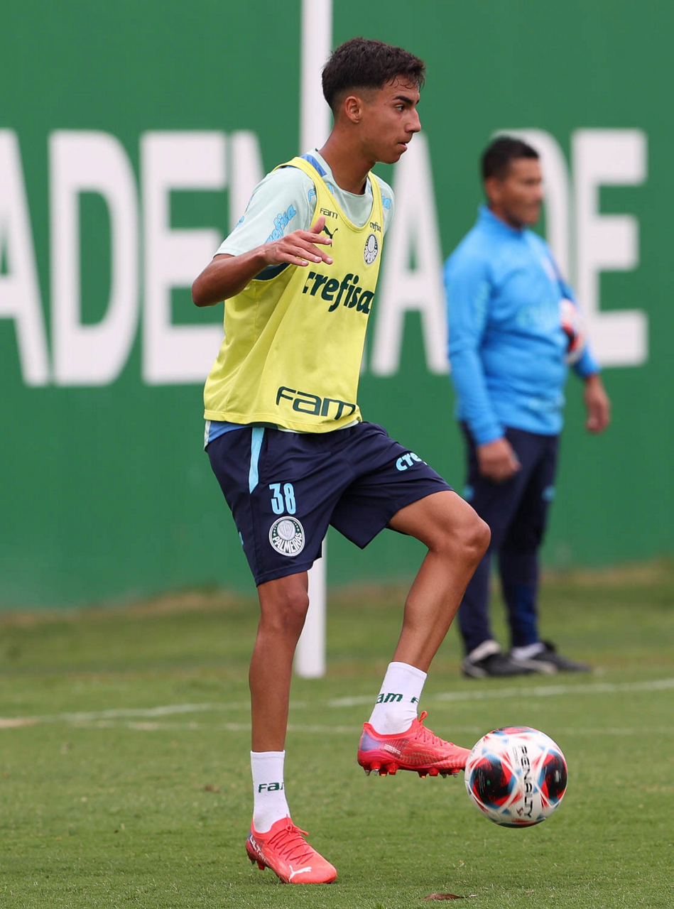 O jogador Gabriel Menino, da SE Palmeiras, durante treinamento, na Academia de Futebol. (Foto: Cesar Greco/Palmeiras/by Canon)