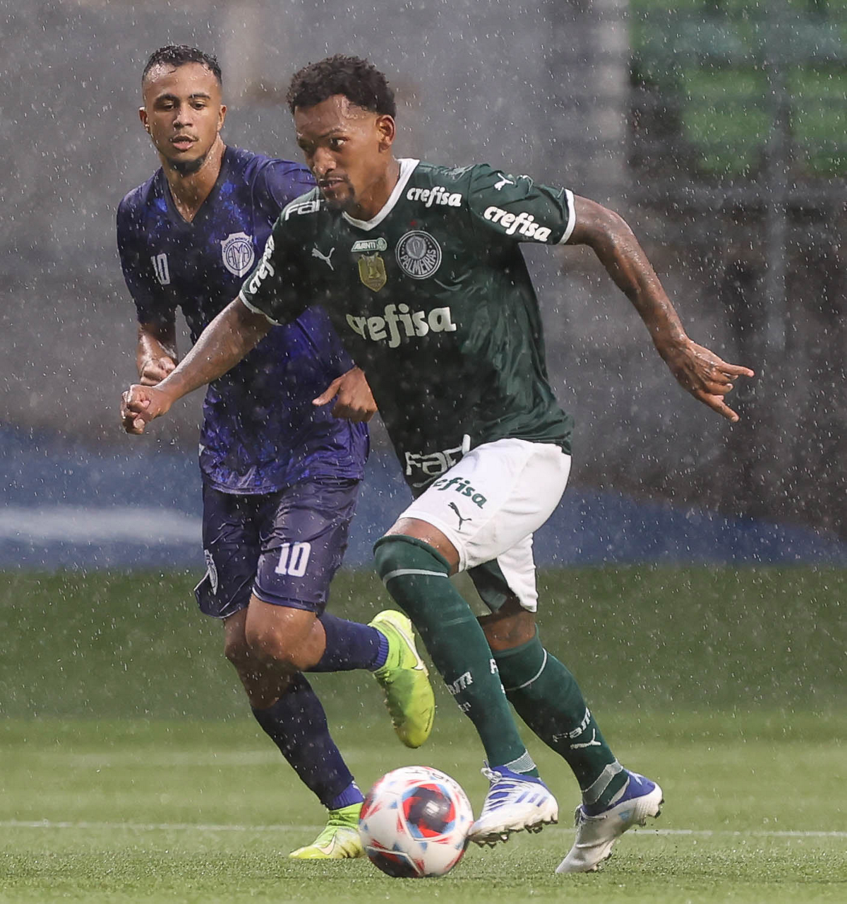 Os jogadores Endrick e Rony (D), da SE Palmeiras, durante jogo-treino contra a equipe do Monte Azul, na arena Allianz Parque. (Foto: Cesar Greco/Palmeiras/by Canon)