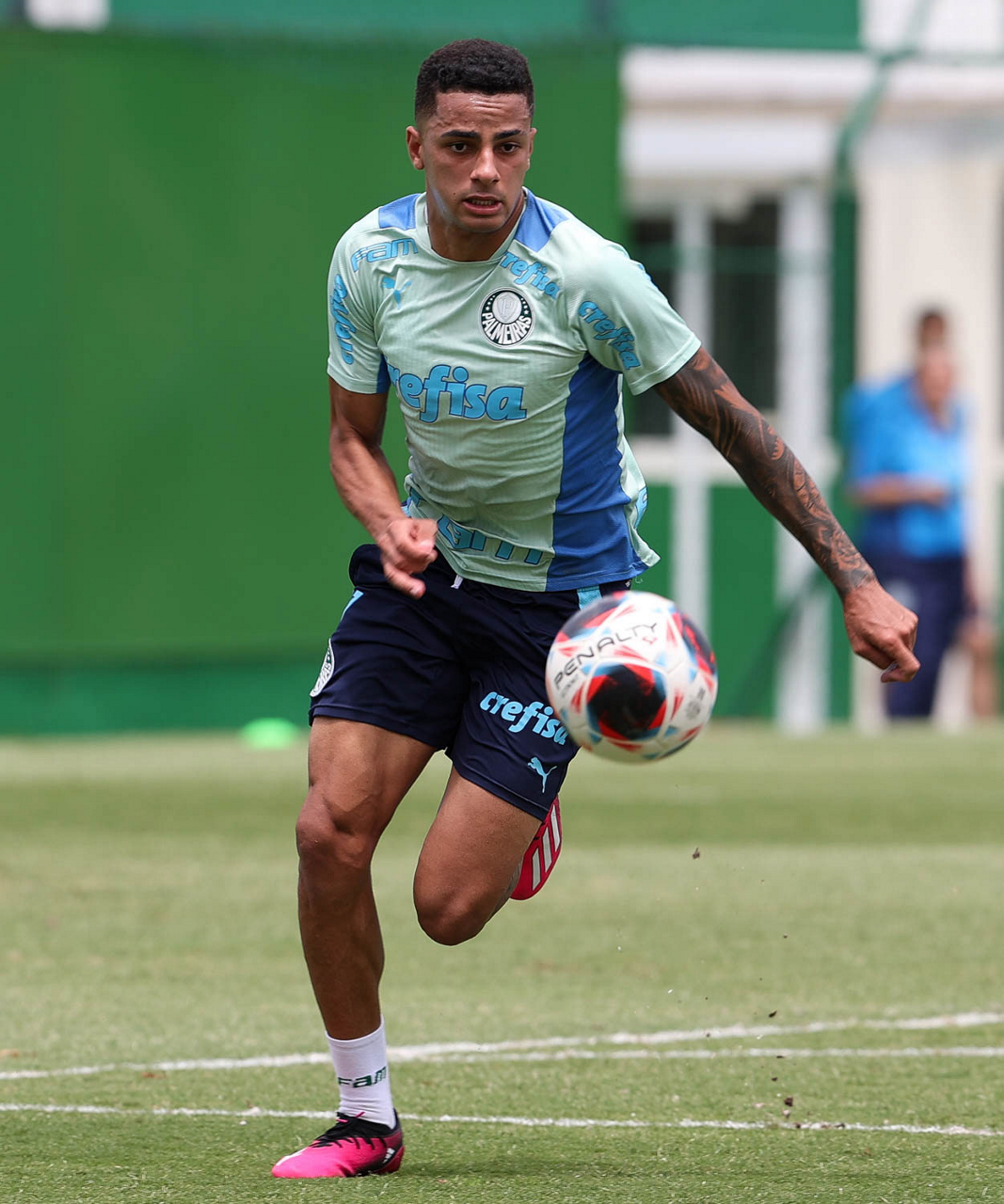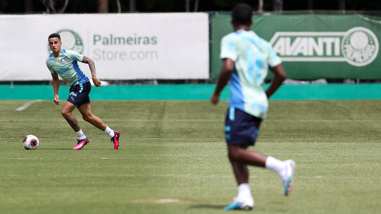 O jogador Endrick, da SE Palmeiras, durante treinamento, na Academia de Futebol. (Foto: Cesar Greco/Palmeiras/by Canon)