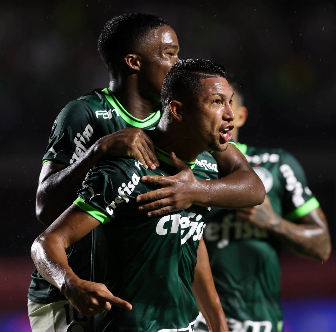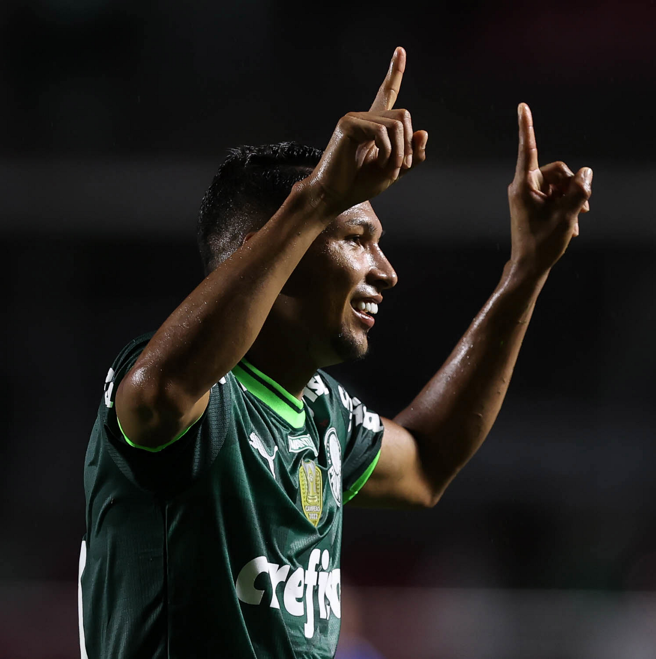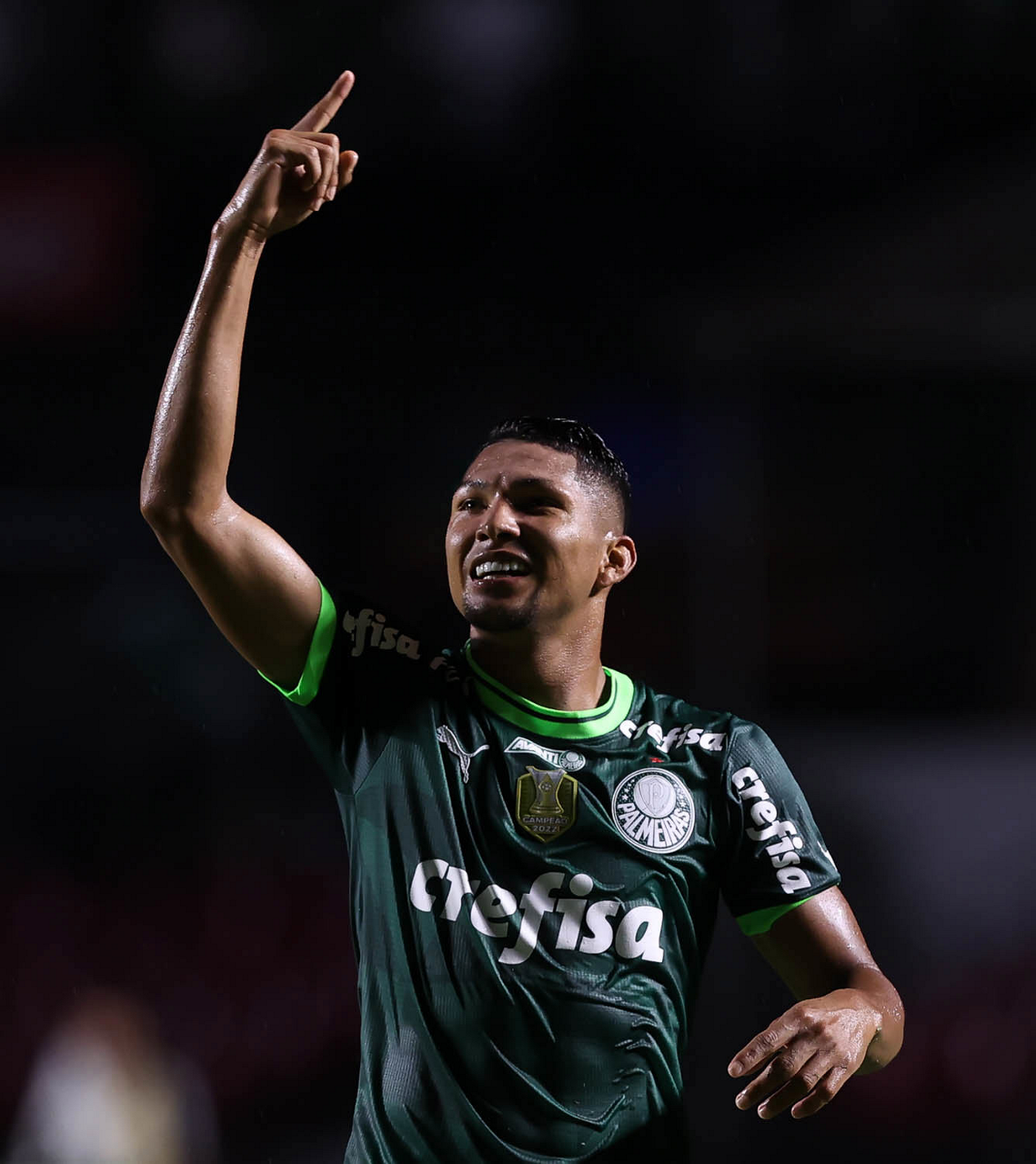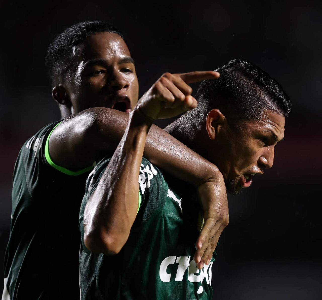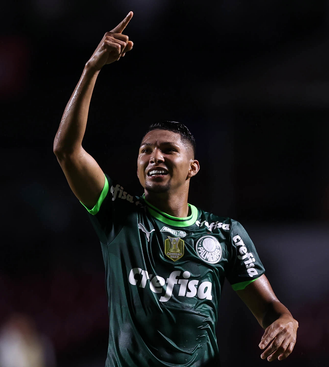 O jogador Rony, da SE Palmeiras, comemora seu gol contra a equipe do Santos FC, durante partida válida pela sexta rodada, do Campeonato Paulista, Série A1, no Estádio do Morumbi. (Foto: Cesar Greco/Palmeiras/by Canon)