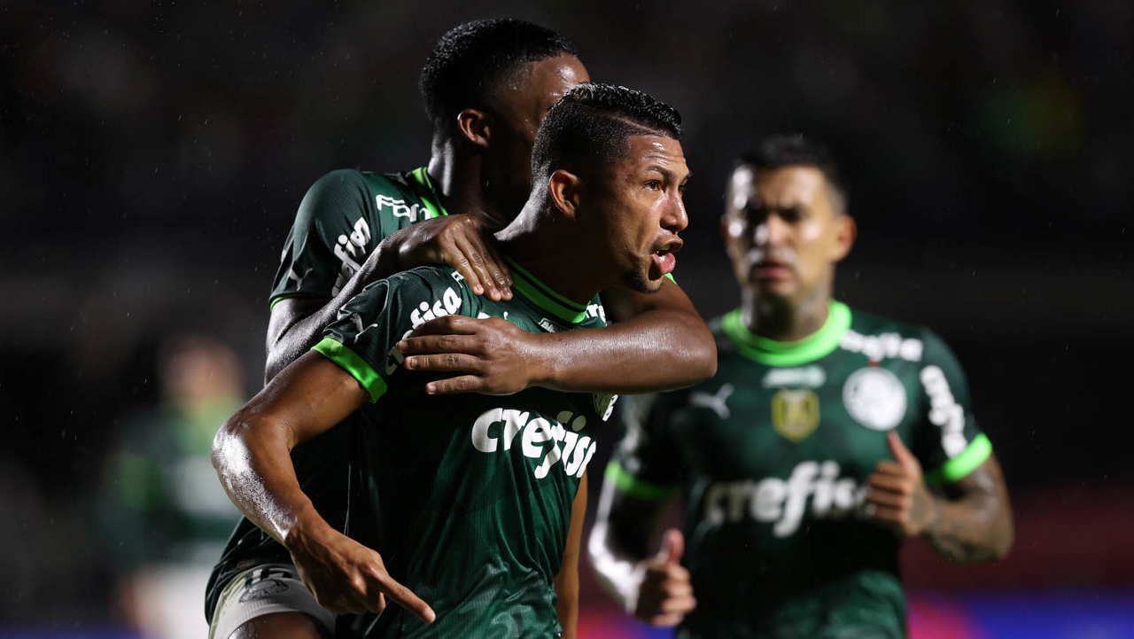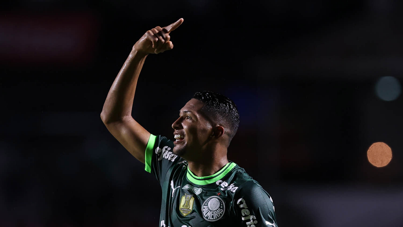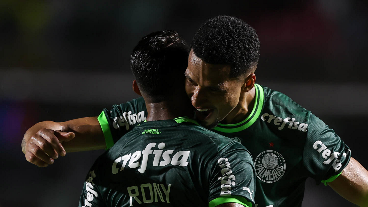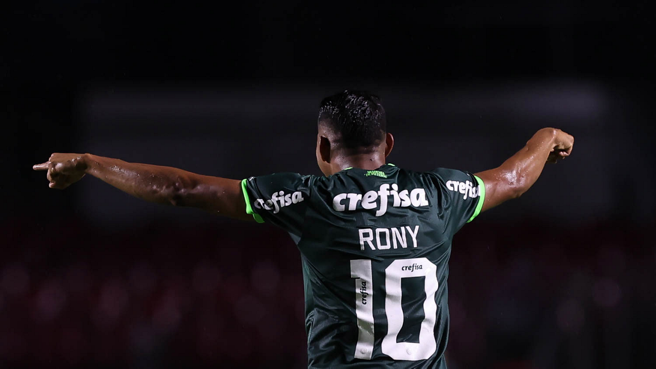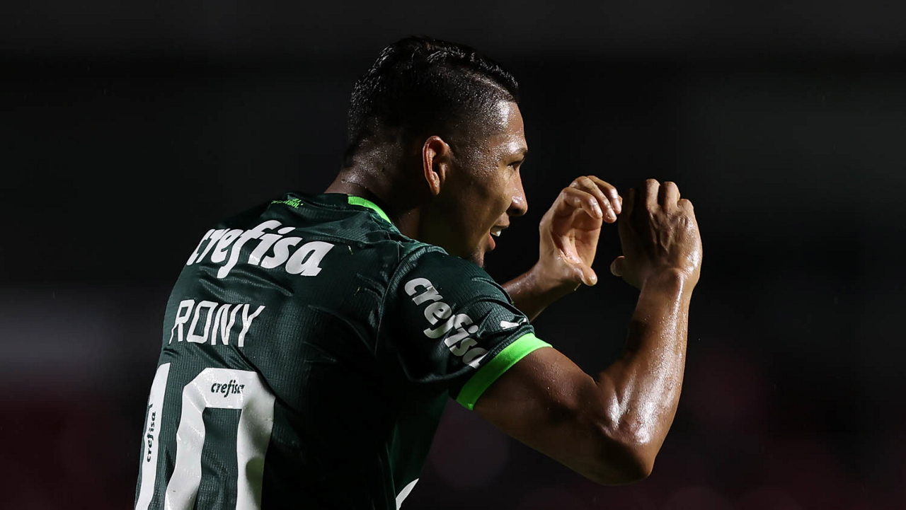 O jogador Rony, da SE Palmeiras, em jogo contra a equipe do Santos FC, durante partida válida pela sexta rodada, do Campeonato Paulista, Série A1, no Estádio do Morumbi. (Foto: Cesar Greco/Palmeiras/by Canon)