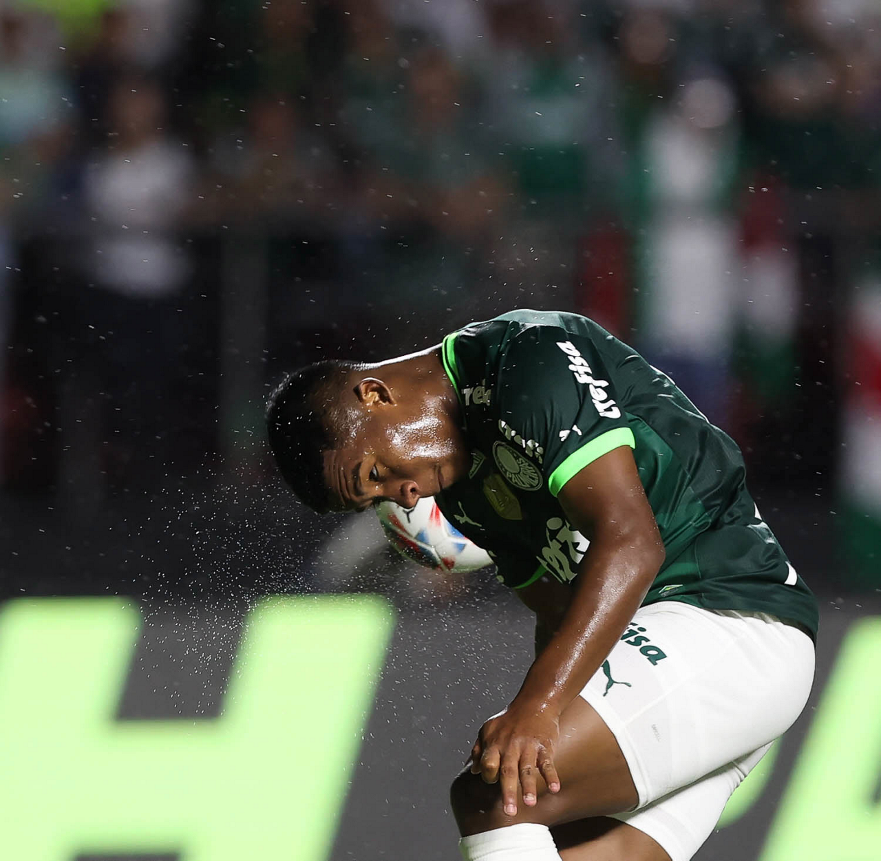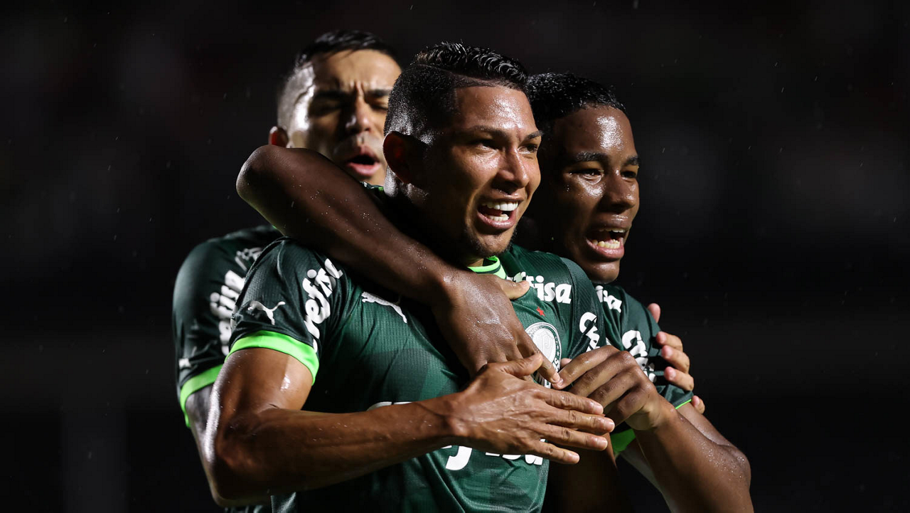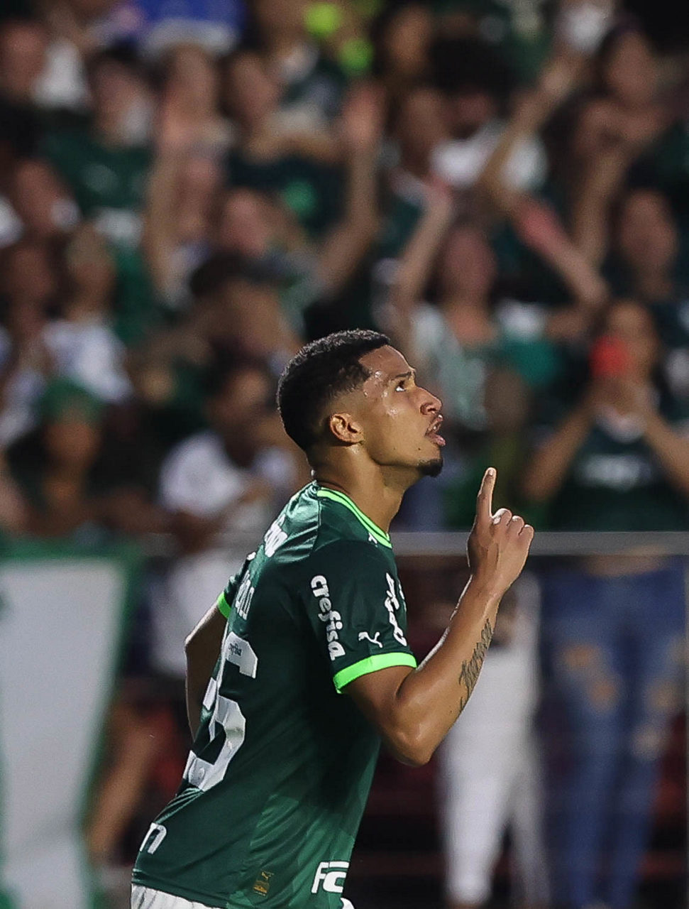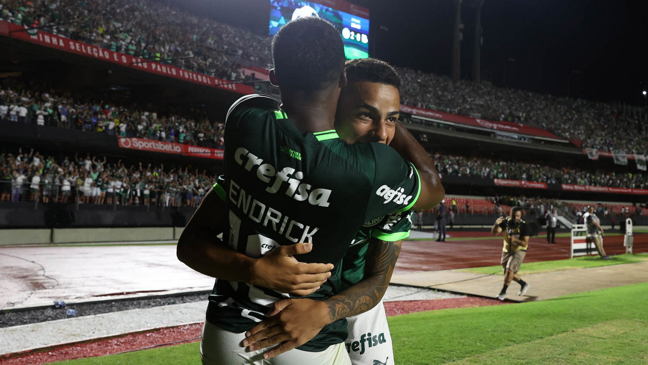 O jogador Endrick, da SE Palmeiras, em jogo contra a equipe do Santos FC, durante partida válida pela sexta rodada, do Campeonato Paulista, Série A1, no Estádio do Morumbi. (Foto: Cesar Greco/Palmeiras/by Canon)