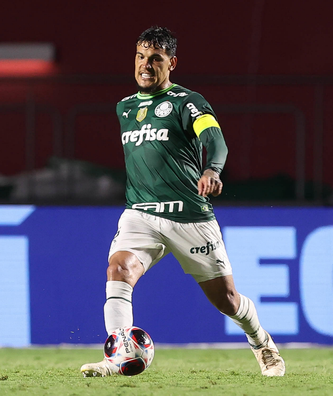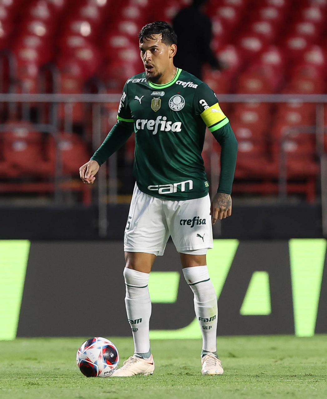 O jogador Gustavo Gómez, da SE Palmeiras, em jogo contra a equipe do Santos FC, durante partida válida pela sexta rodada, do Campeonato Paulista, Série A1, no Estádio do Morumbi. (Foto: Cesar Greco/Palmeiras/by Canon)