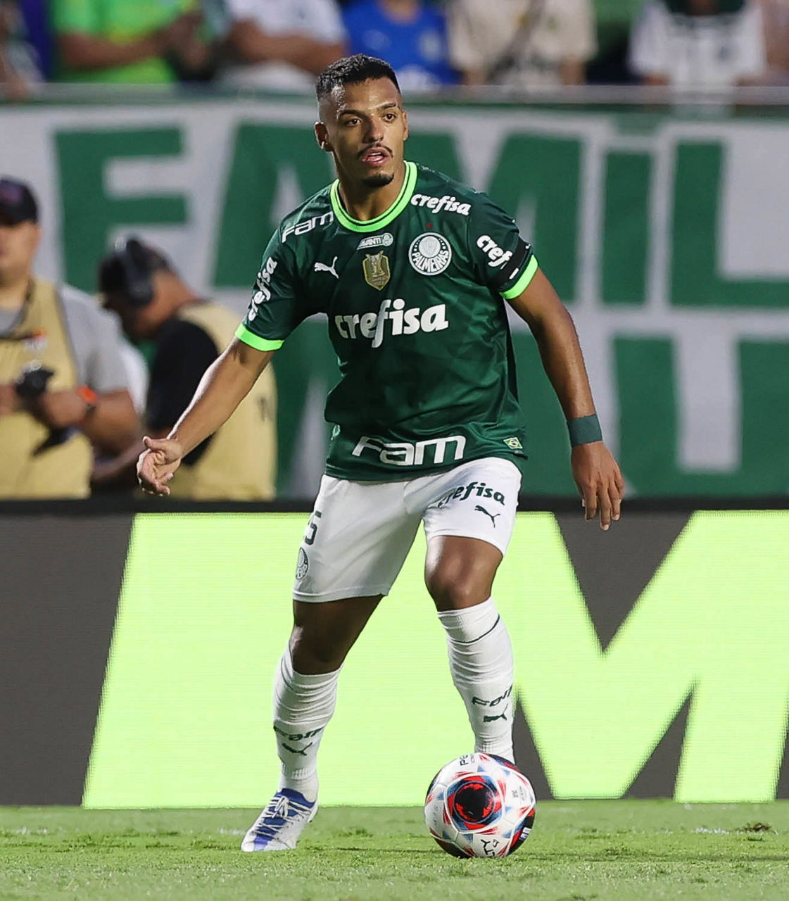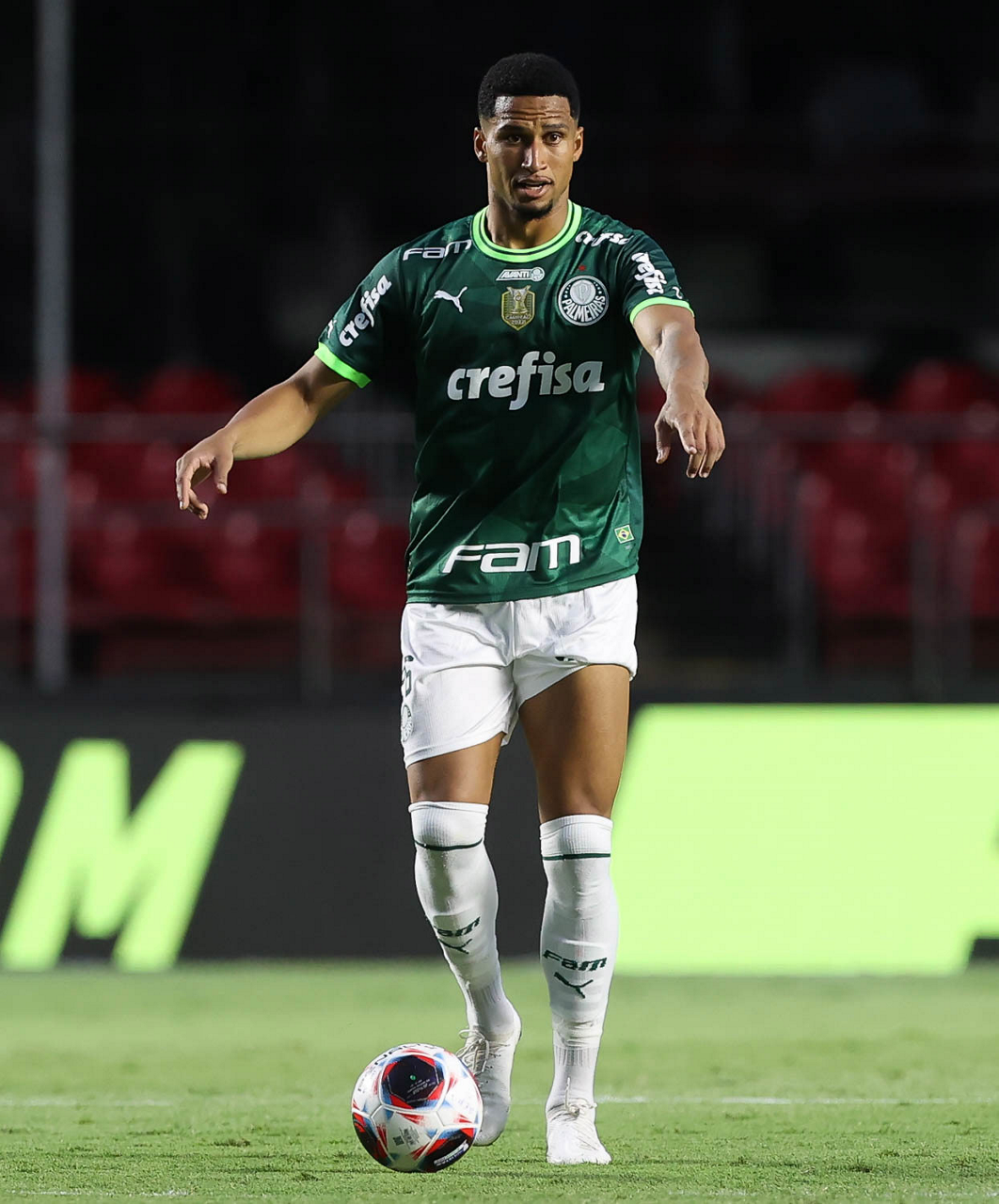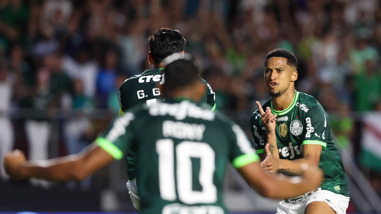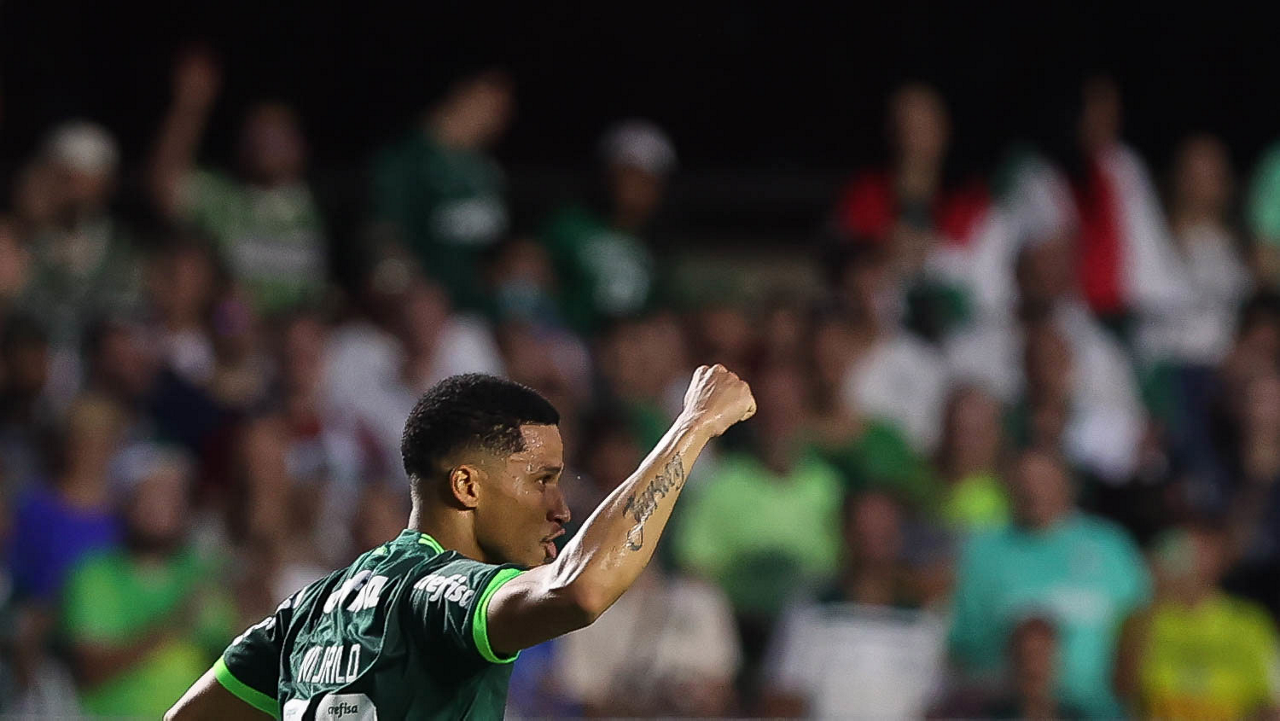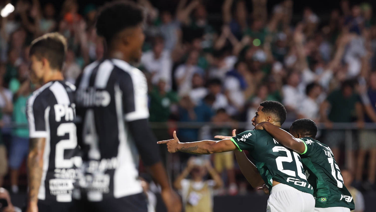 O jogador Gabriel Menino, da SE Palmeiras, em jogo contra a equipe do Santos FC, durante partida válida pela sexta rodada, do Campeonato Paulista, Série A1, no Estádio do Morumbi. (Foto: Cesar Greco/Palmeiras/by Canon)