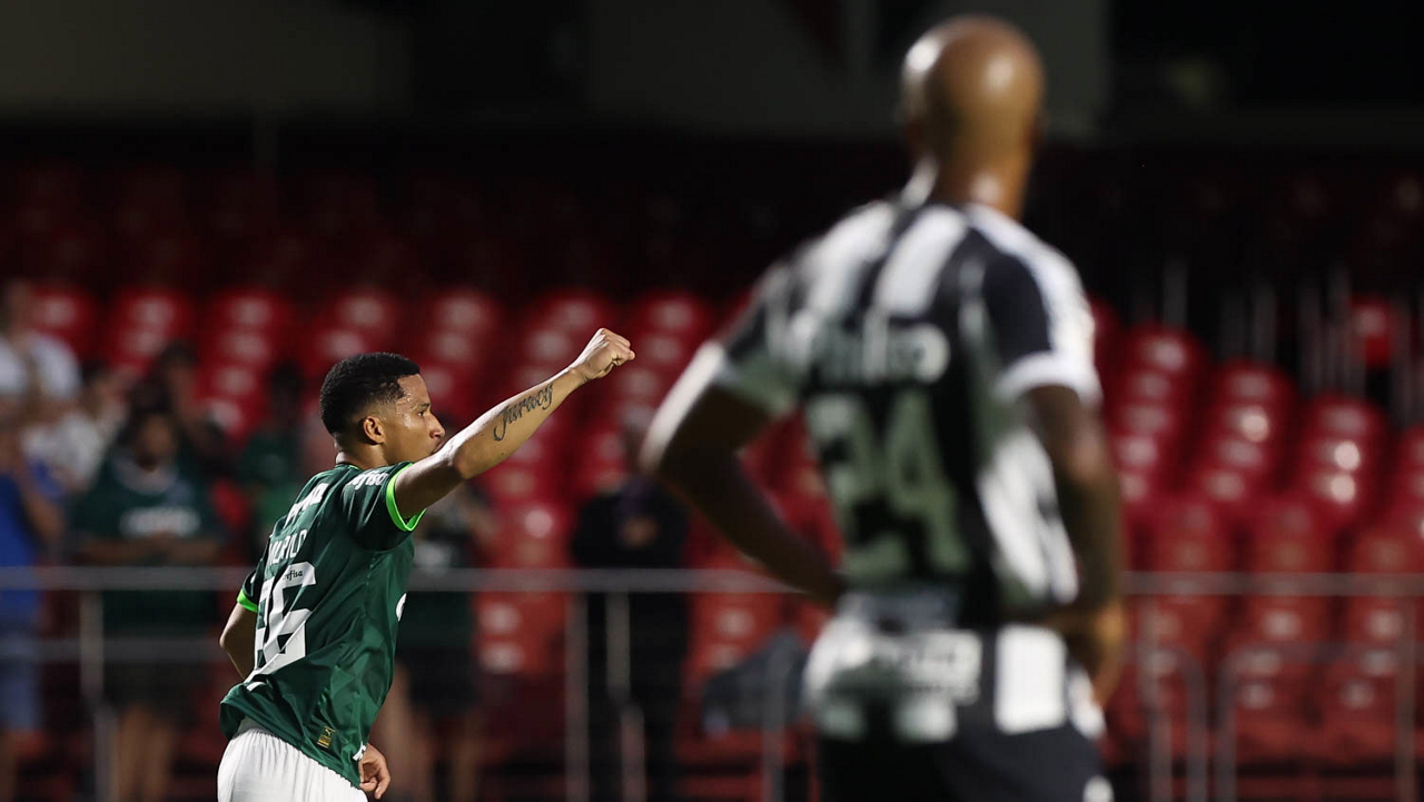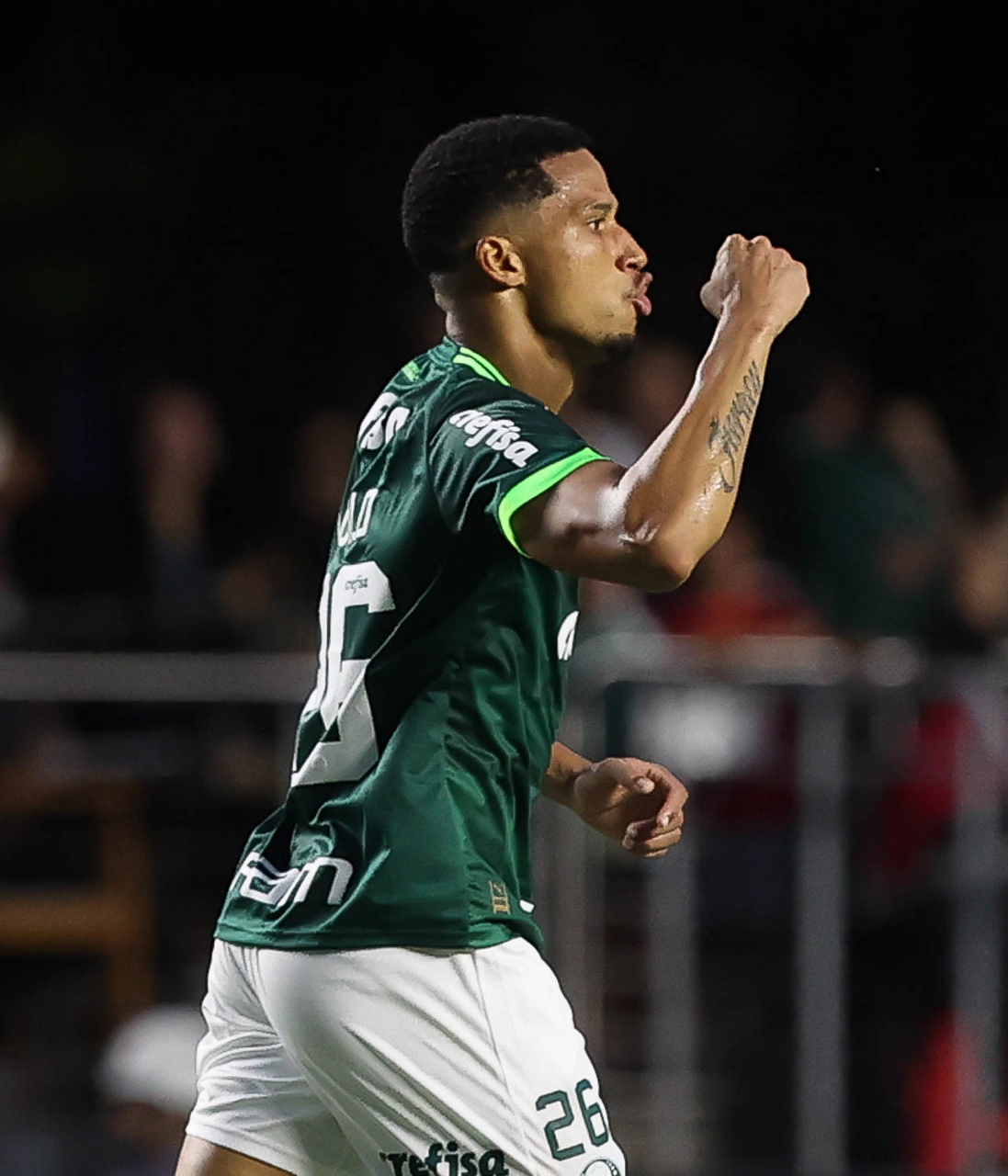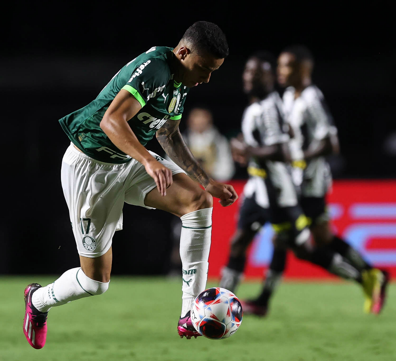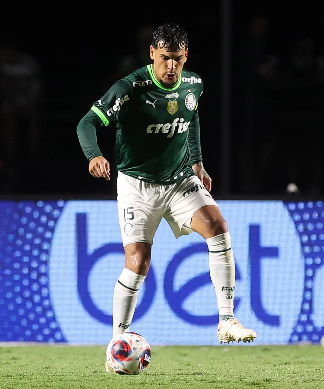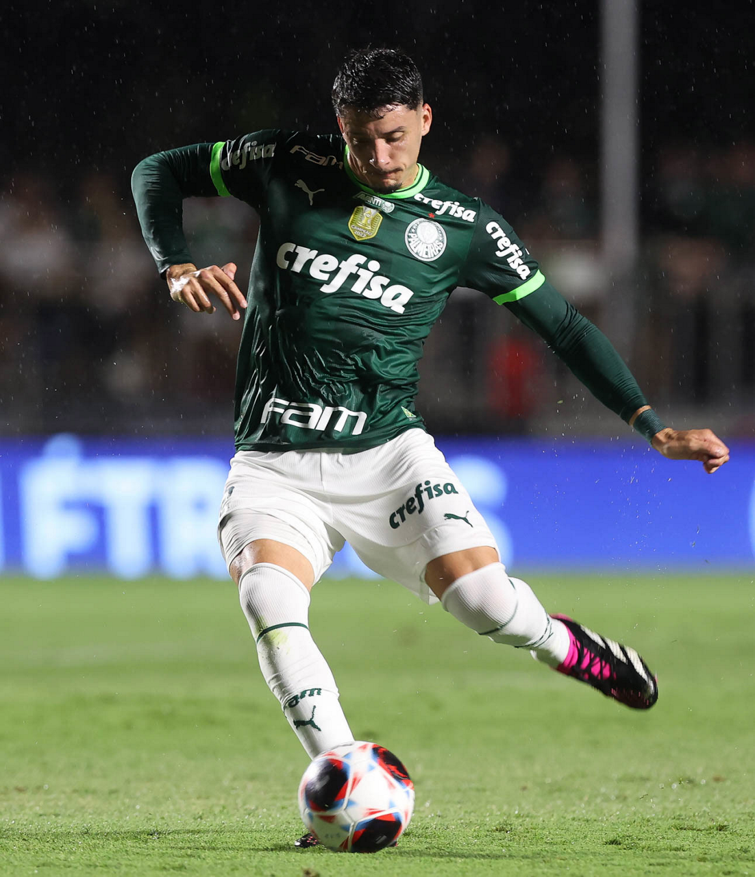 O jogador Gabriel Menino, da SE Palmeiras, em jogo contra a equipe do Santos FC, durante partida válida pela sexta rodada, do Campeonato Paulista, Série A1, no Estádio do Morumbi. (Foto: Cesar Greco/Palmeiras/by Canon)