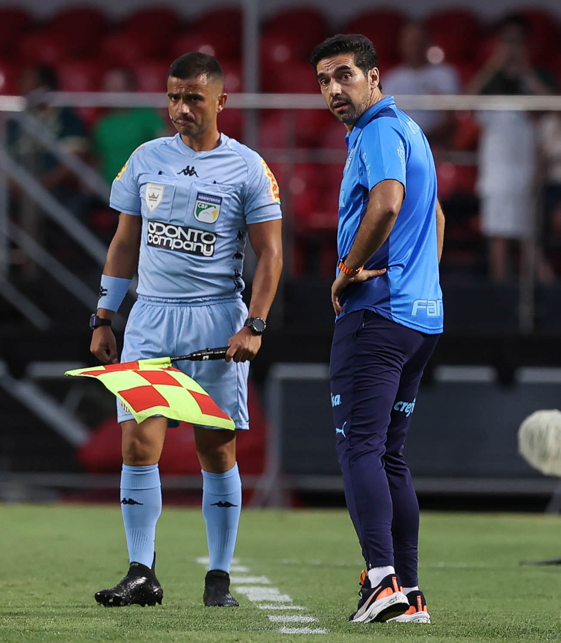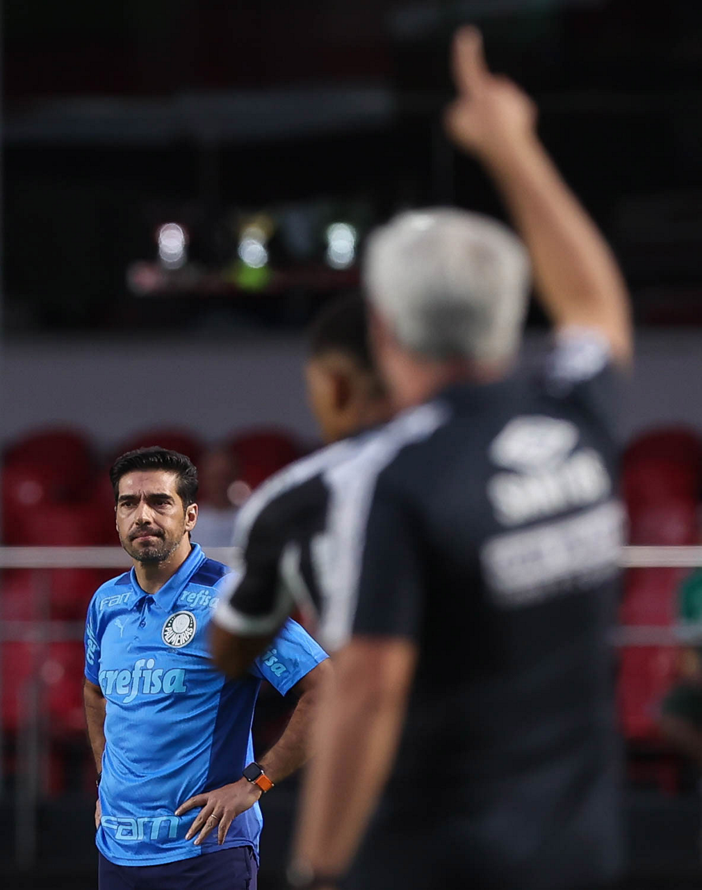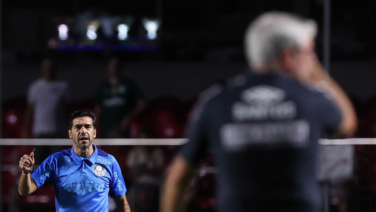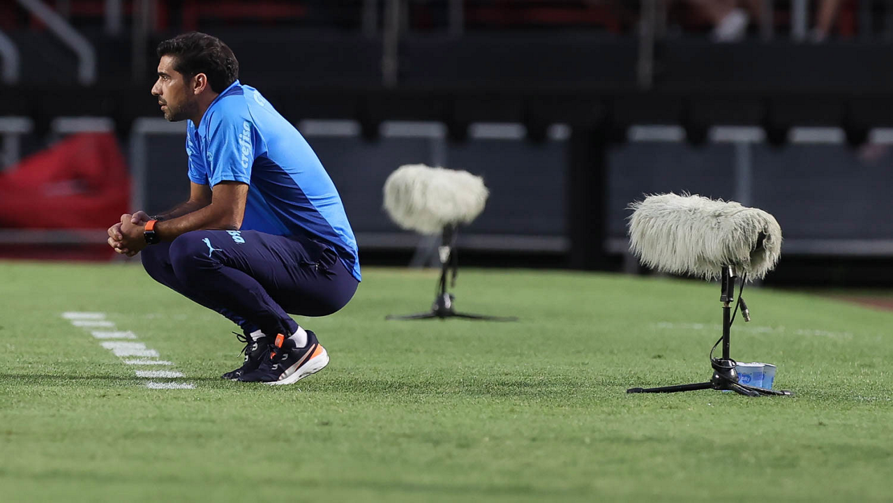 O técnico Abel Ferreira, da SE Palmeiras, em jogo contra a equipe do Santos FC, durante partida válida pela sexta rodada, do Campeonato Paulista, Série A1, no Estádio do Morumbi. (Foto: Cesar Greco/Palmeiras/by Canon)