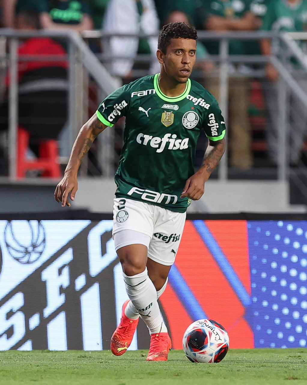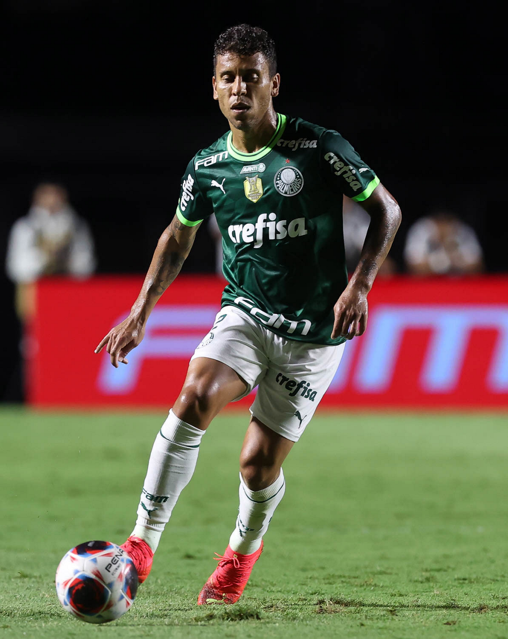 O jogador Marcos Rocha, da SE Palmeiras, em jogo contra a equipe do Santos FC, durante partida válida pela sexta rodada, do Campeonato Paulista, Série A1, no Estádio do Morumbi. (Foto: Cesar Greco/Palmeiras/by Canon)