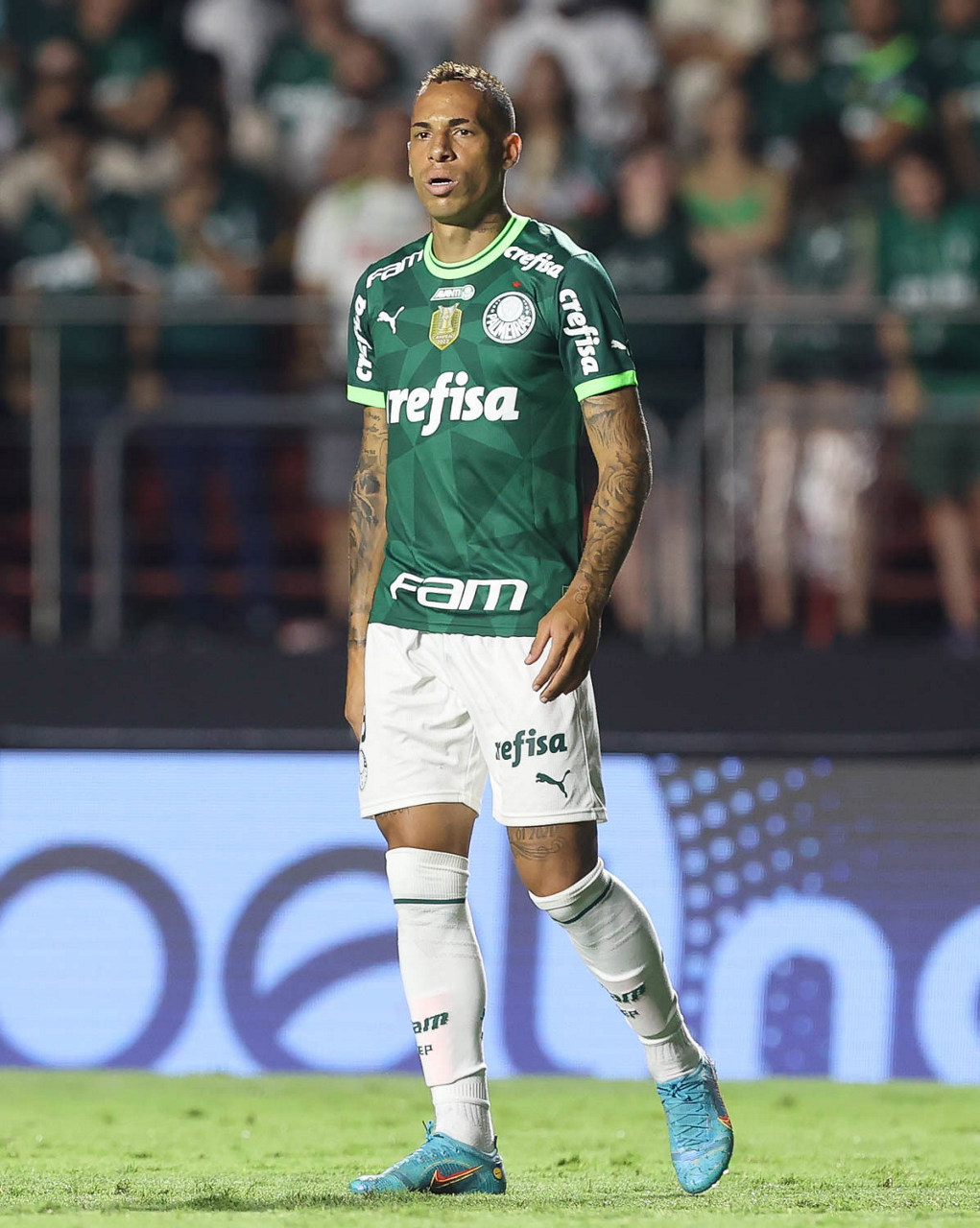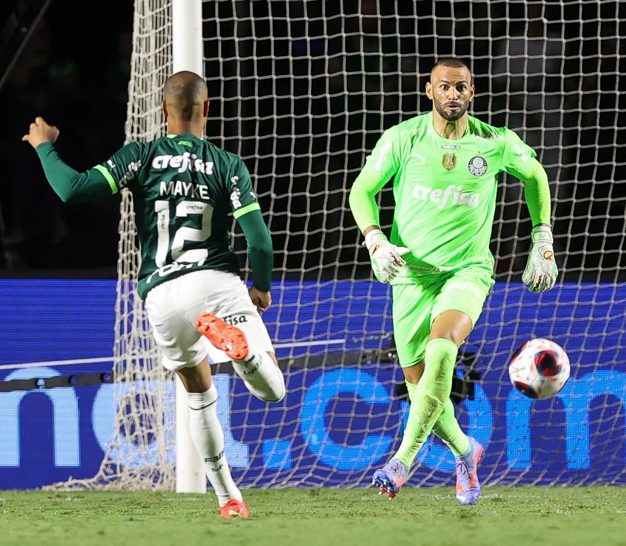 O jogador Mayke, da SE Palmeiras, em jogo contra a equipe do Santos FC, durante partida válida pela sexta rodada, do Campeonato Paulista, Série A1, no Estádio do Morumbi. (Foto: Cesar Greco/Palmeiras/by Canon)