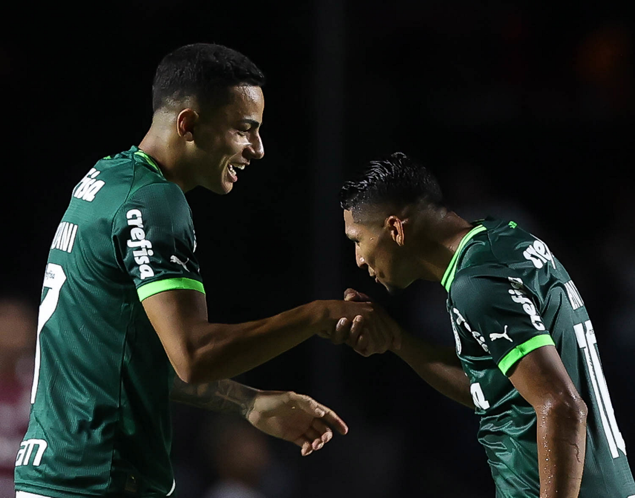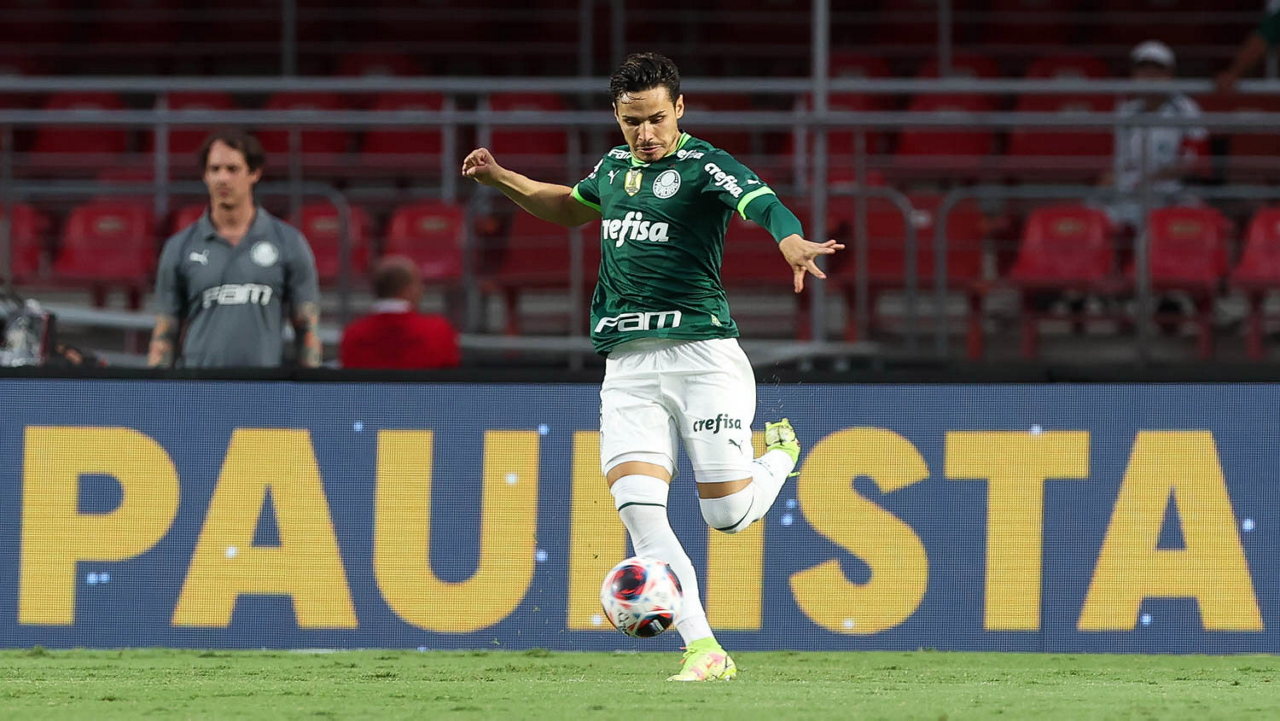 O jogador Raphael Veiga, da SE Palmeiras, em jogo contra a equipe do Santos FC, durante partida válida pela sexta rodada, do Campeonato Paulista, Série A1, no Estádio do Morumbi. (Foto: Cesar Greco/Palmeiras/by Canon)