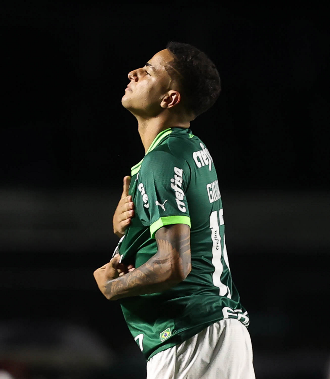 O jogador Giovani, da SE Palmeiras, em jogo contra a equipe do Santos FC, durante partida válida pela sexta rodada, do Campeonato Paulista, Série A1, no Estádio do Morumbi. (Foto: Cesar Greco/Palmeiras/by Canon)