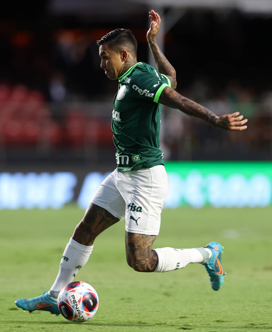 O jogador Dudu, da SE Palmeiras, em jogo contra a equipe do Santos FC, durante partida válida pela sexta rodada, do Campeonato Paulista, Série A1, no Estádio do Morumbi. (Foto: Cesar Greco/Palmeiras/by Canon)