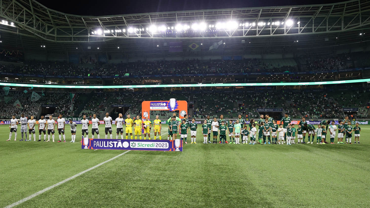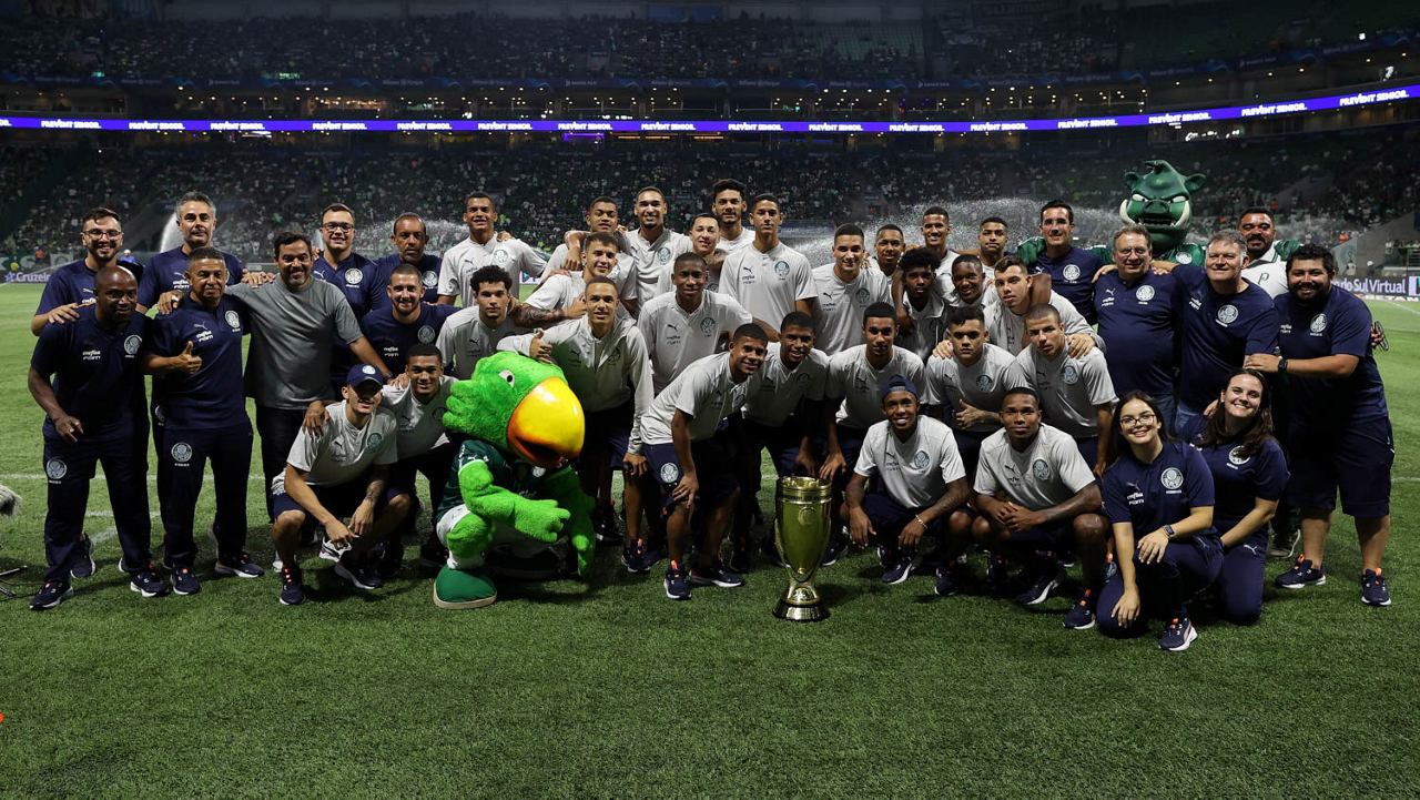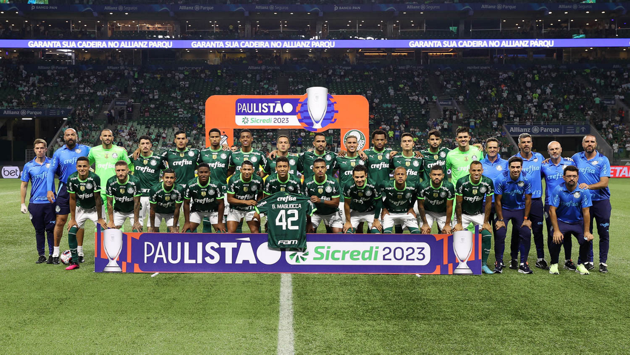 O time da SE Palmeiras, posa para foto com camisa em homenagem ao aniversário do médico Gustavo Maglioca, em jogo contra a equipe da AA Internacional de Limeira, durante partida válida pela sétima rodada, do Campeonato Paulista, Série A1, na arena Allianz Parque. (Foto: Cesar Greco/Palmeiras/by Canon)