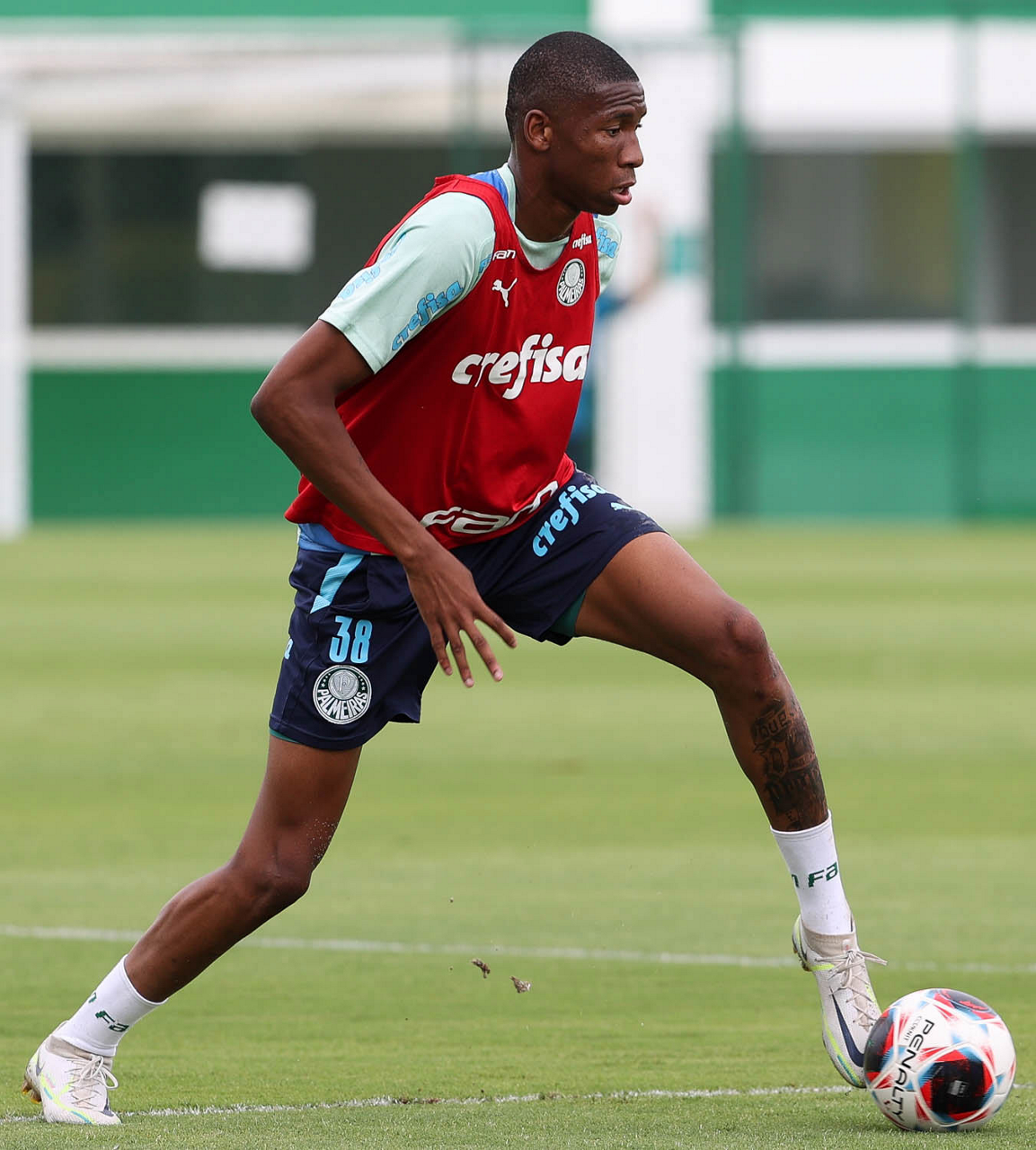 O jogador Endrick, da SE Palmeiras, durante treinamento, na Academia de Futebol. (Foto: Cesar Greco/Palmeiras/by Canon)