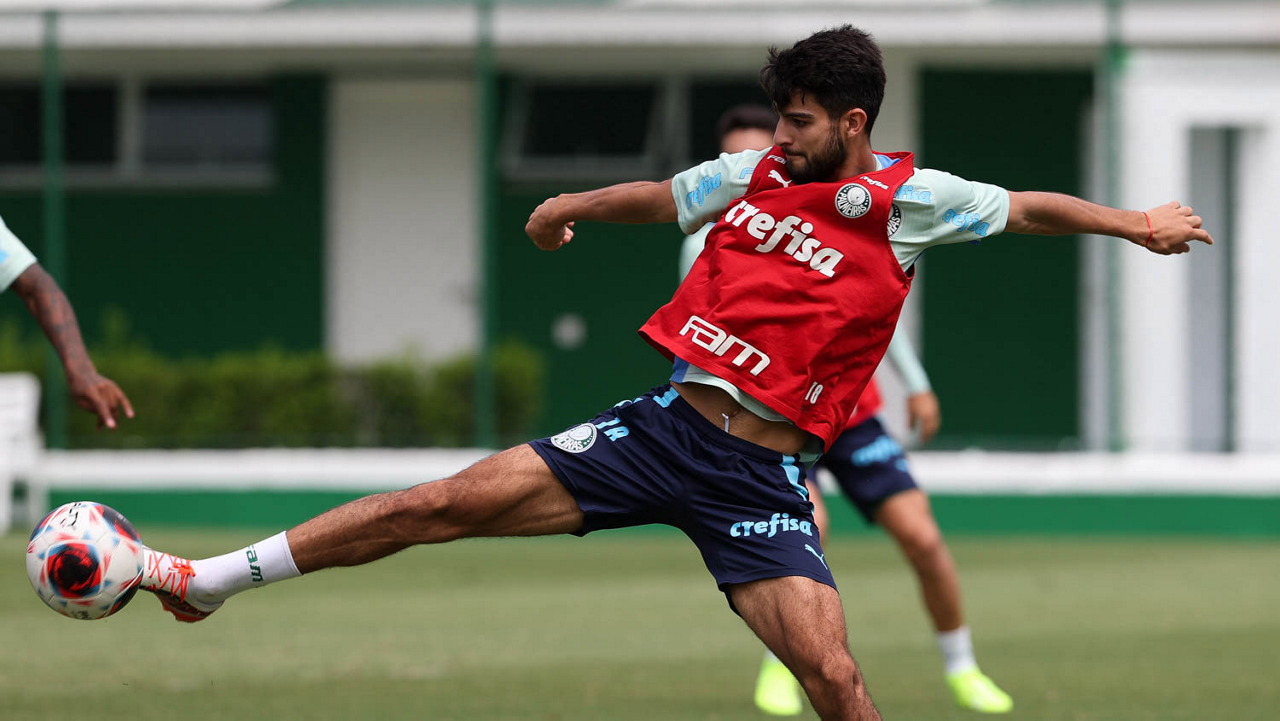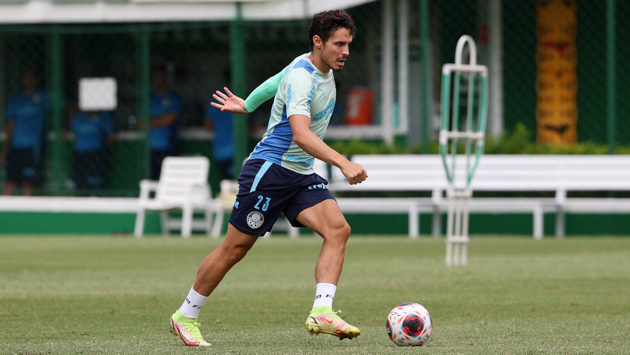 O jogador Raphael Veiga, da SE Palmeiras, durante treinamento, na Academia de Futebol. (Foto: Cesar Greco/Palmeiras/by Canon)