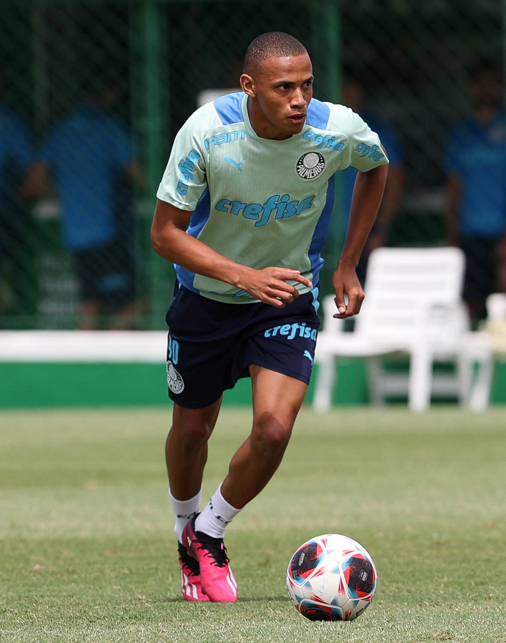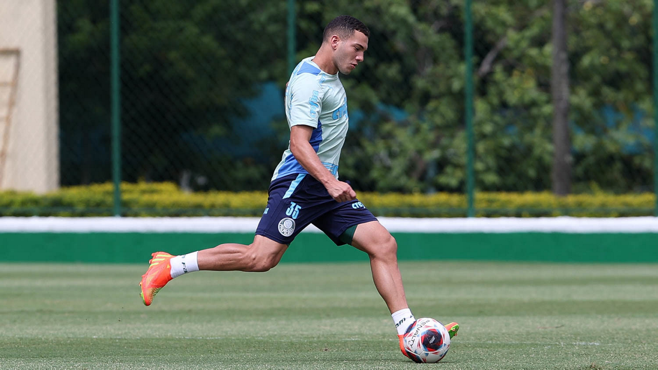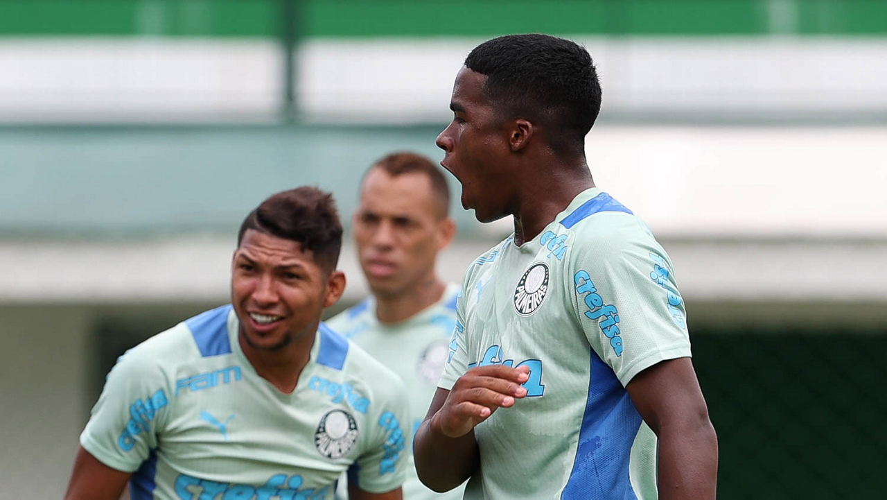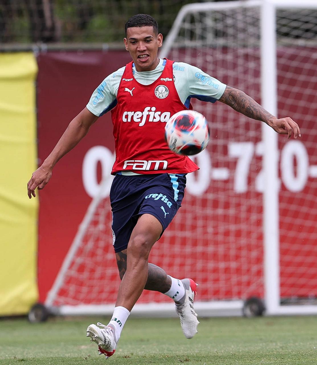 O jogador Endrick, da SE Palmeiras, durante treinamento, na Academia de Futebol. (Foto: Cesar Greco/Palmeiras/by Canon)
