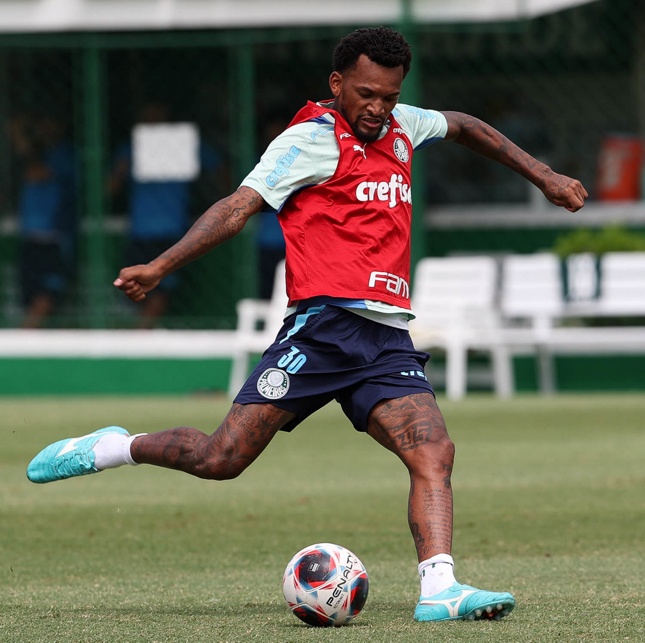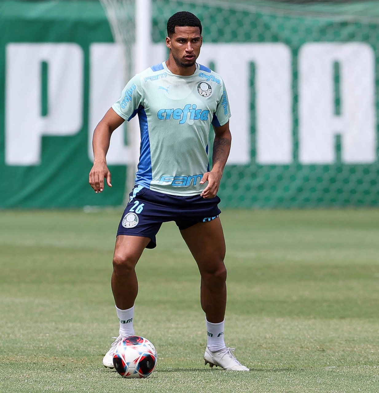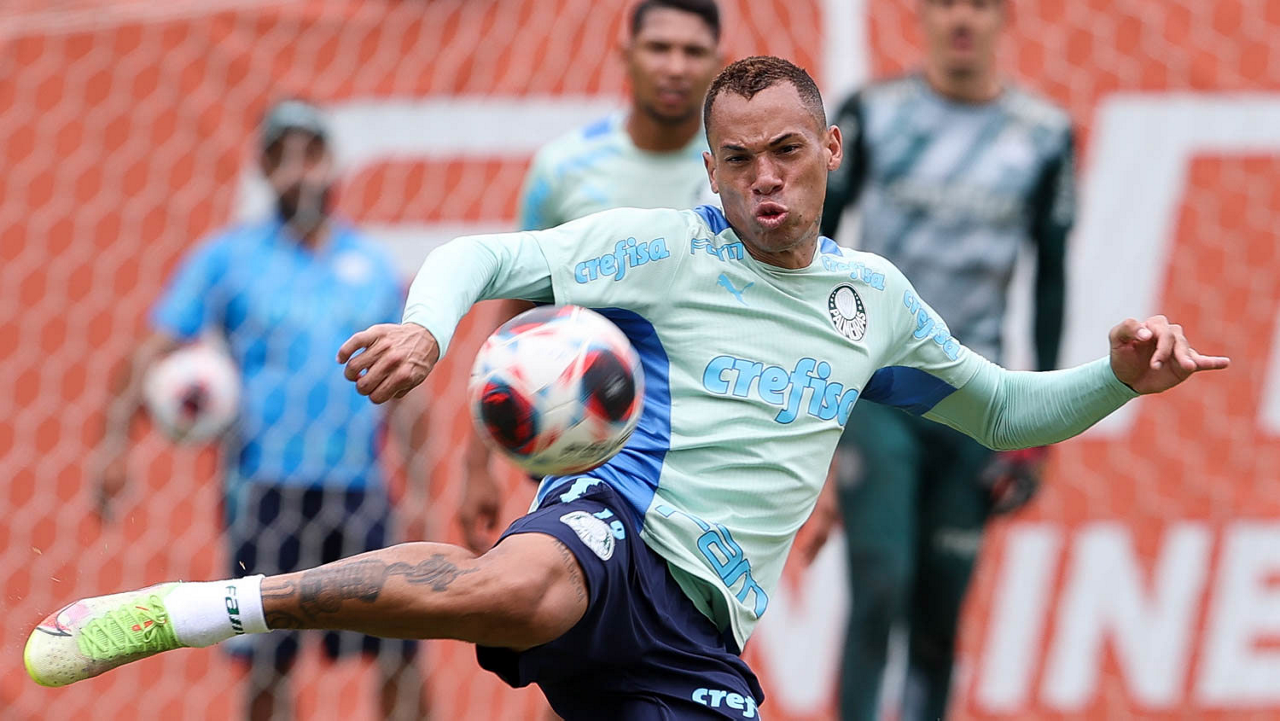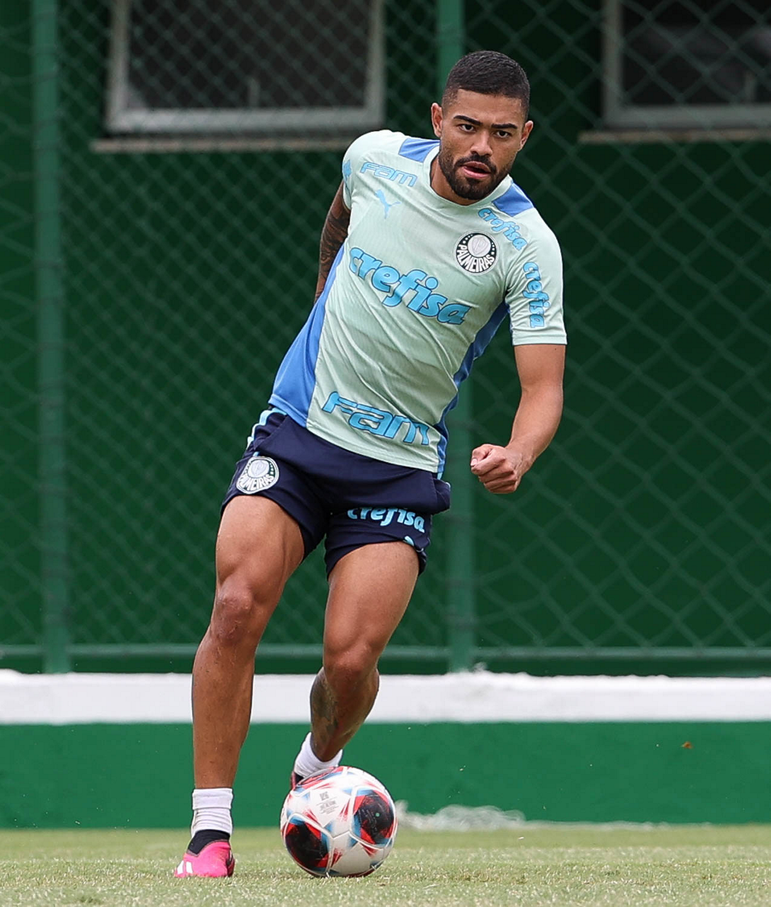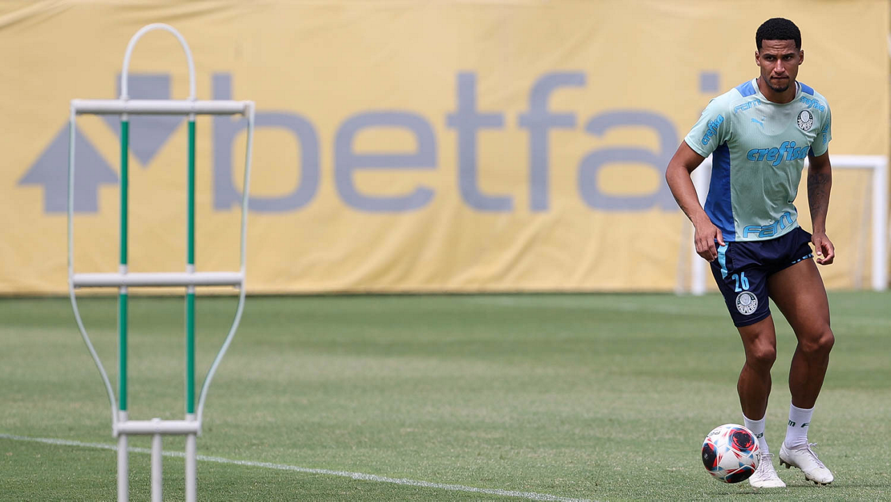 O jogador Fabinho, da SE Palmeiras, durante treinamento, na Academia de Futebol. (Foto: Cesar Greco/Palmeiras/by Canon)