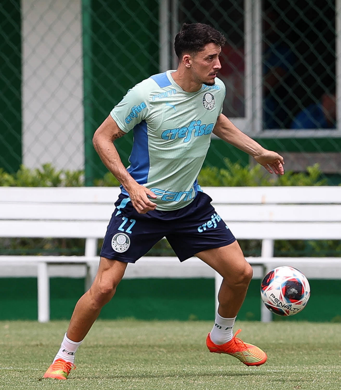 O jogador Joaquín Piquerez, da SE Palmeiras, durante treinamento, na Academia de Futebol. (Foto: Cesar Greco/Palmeiras/by Canon)