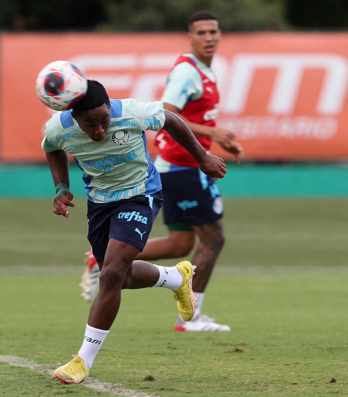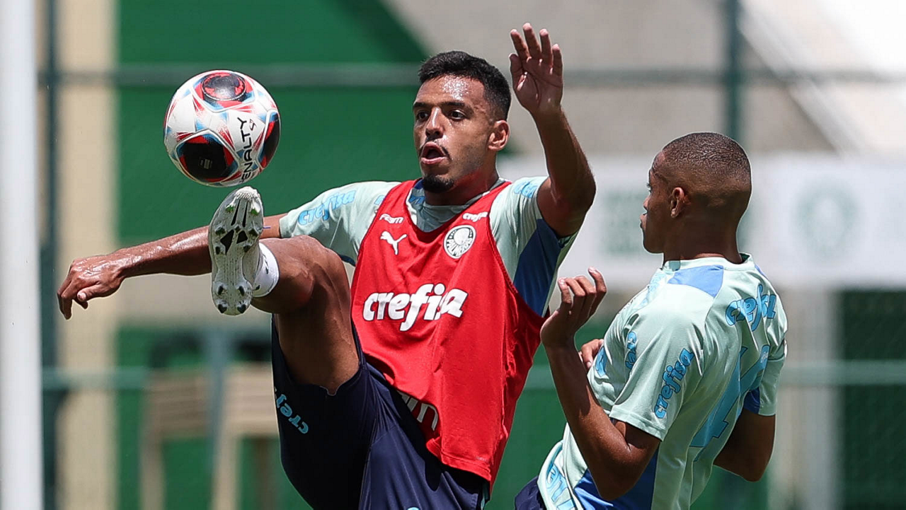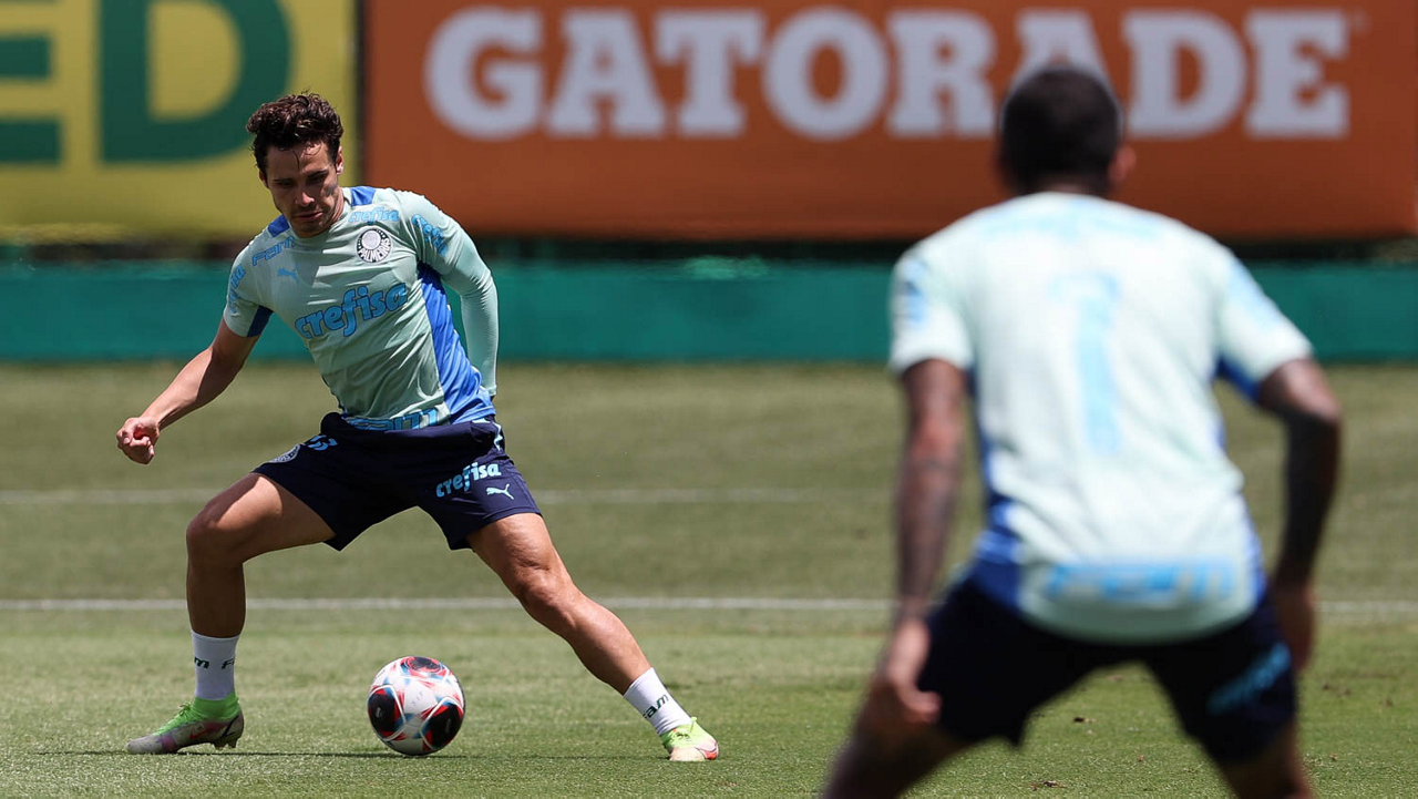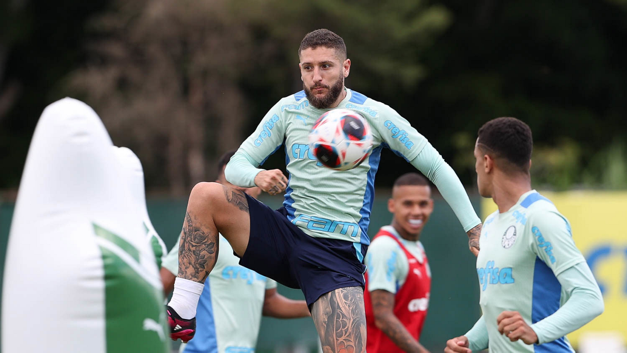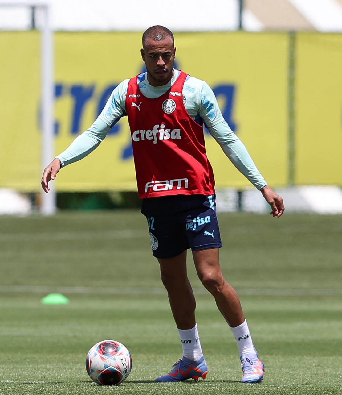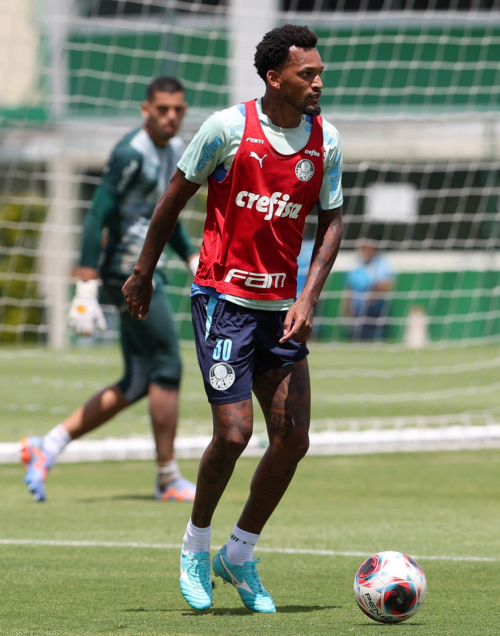 Os jogadores Marcos Rocha, Luan, Fabinho, Murilo, Jailson, Naves, Kaique e Garcia (E/D em pé) e Gustavo Gómez, Mayke, Vanderlan, Gabriel Menino e Joaquín Piquerez (E/D agachados), da SE Palmeiras, durante treinamento, na Academia de Futebol. (Foto: Cesar Greco/Palmeiras/by Canon)