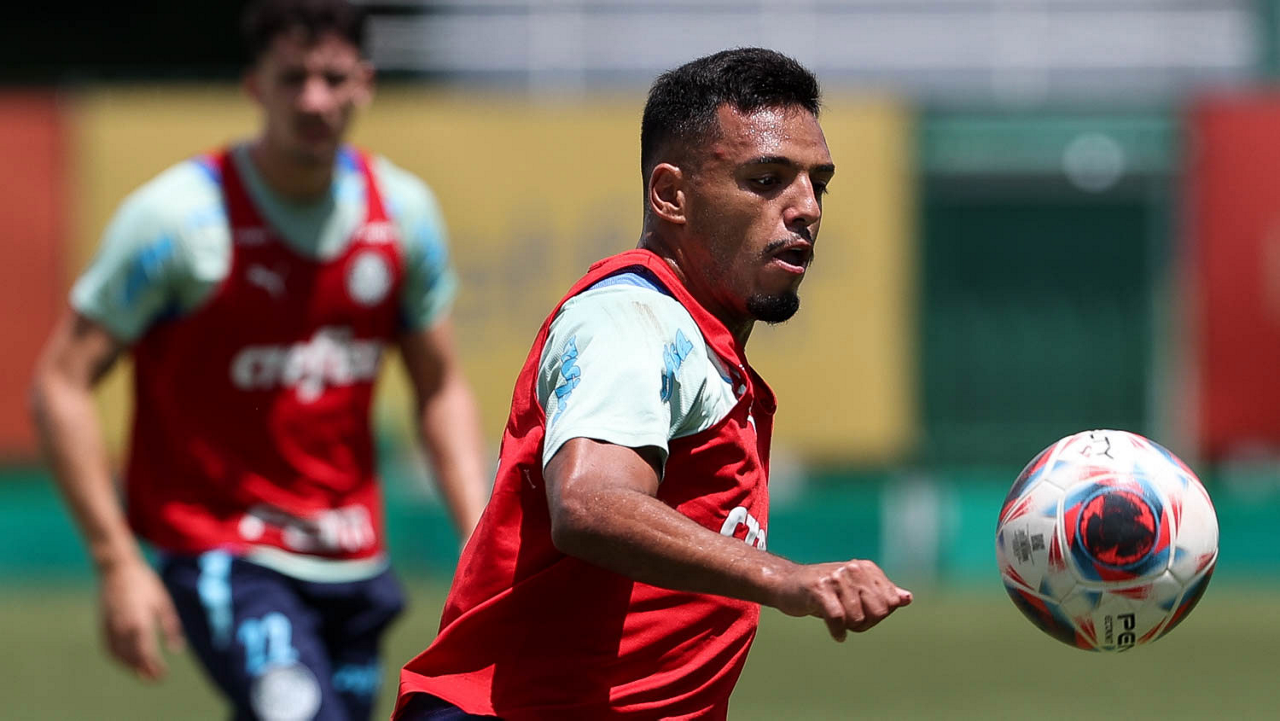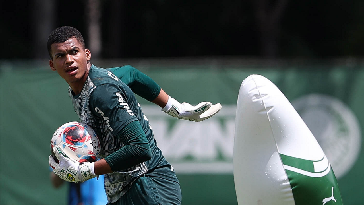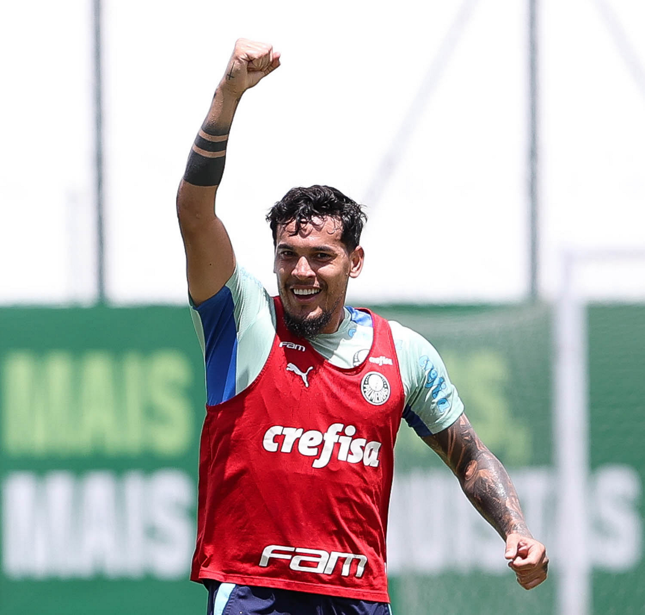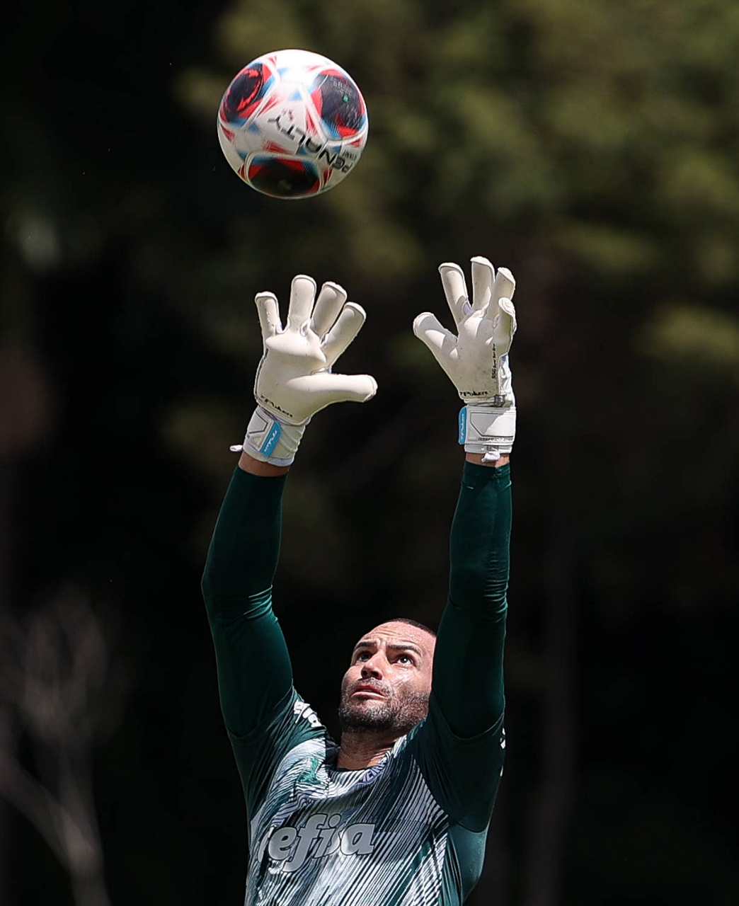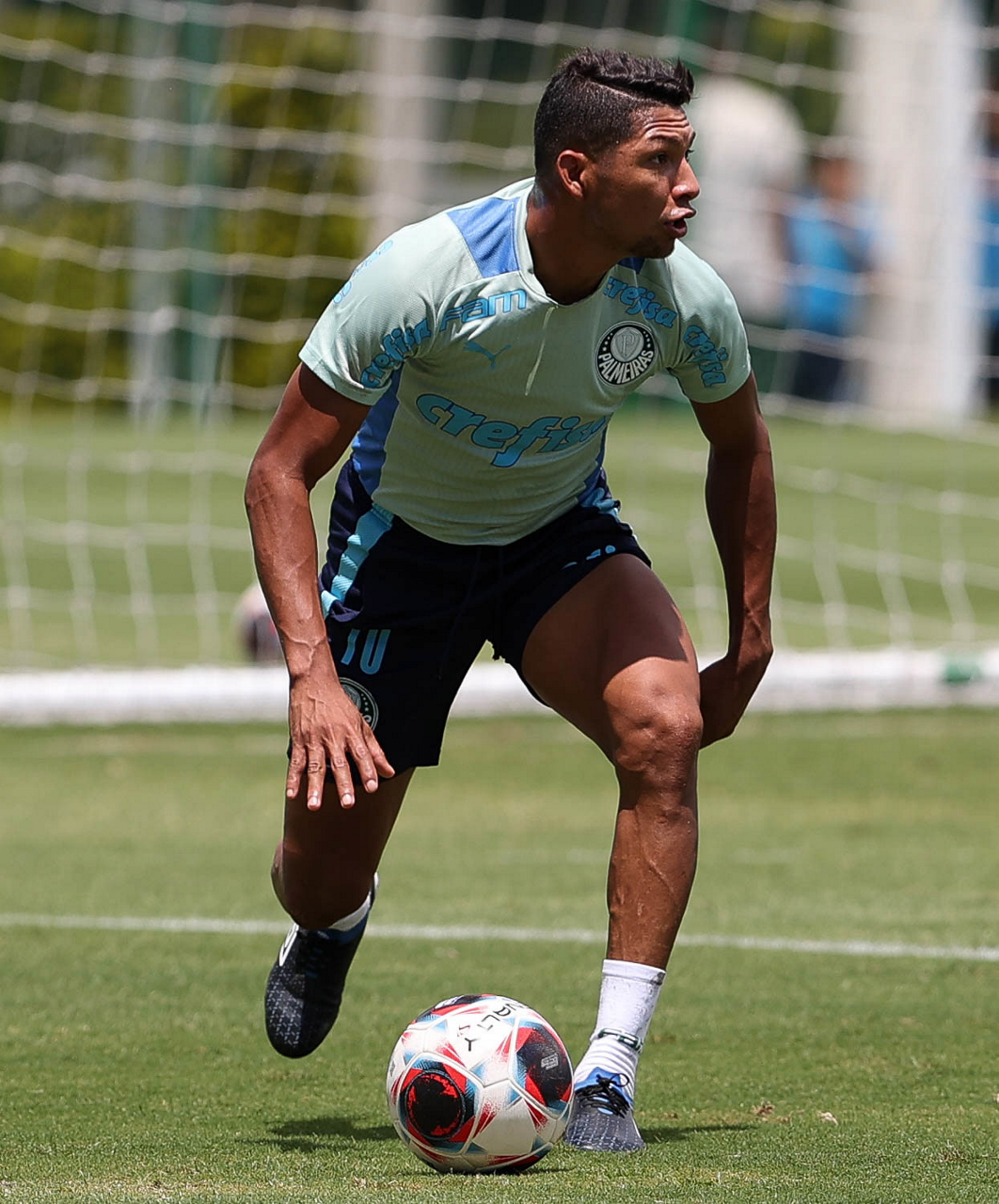 Os jogadores Marcos Rocha, Luan, Fabinho, Murilo, Jailson, Naves, Kaique e Garcia (E/D em pé) e Gustavo Gómez, Mayke, Vanderlan, Gabriel Menino e Joaquín Piquerez (E/D agachados), da SE Palmeiras, durante treinamento, na Academia de Futebol. (Foto: Cesar Greco/Palmeiras/by Canon)