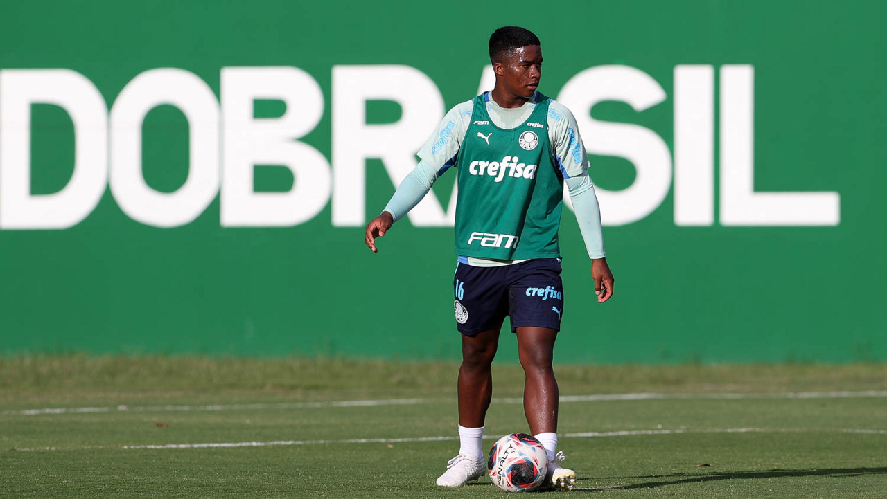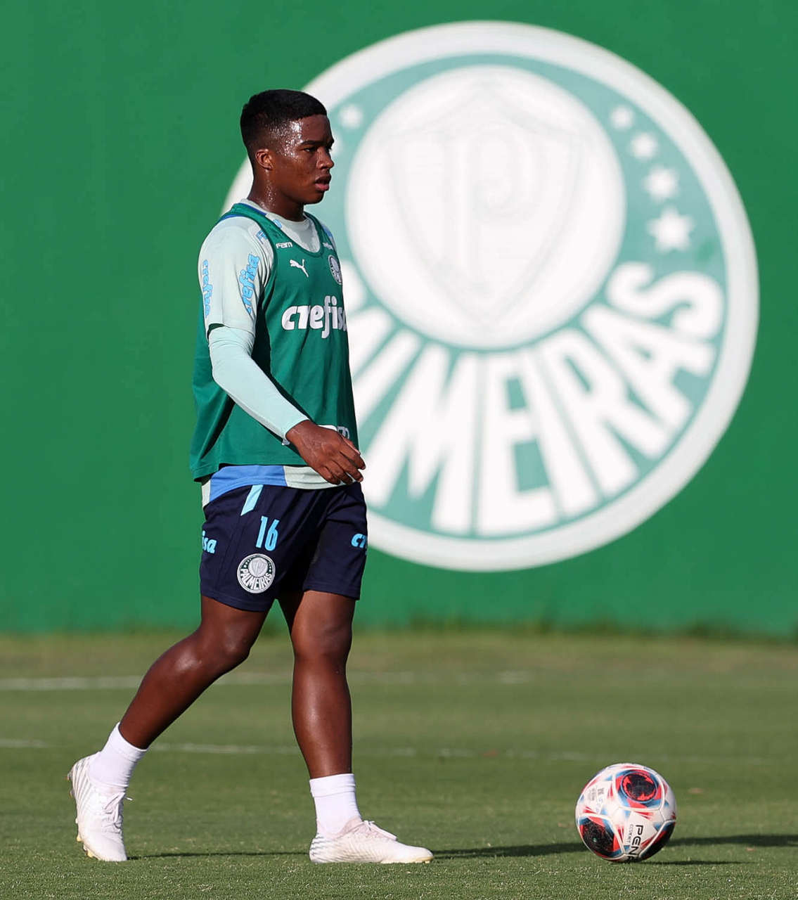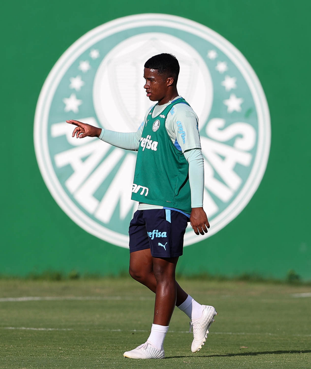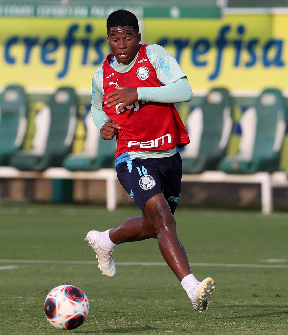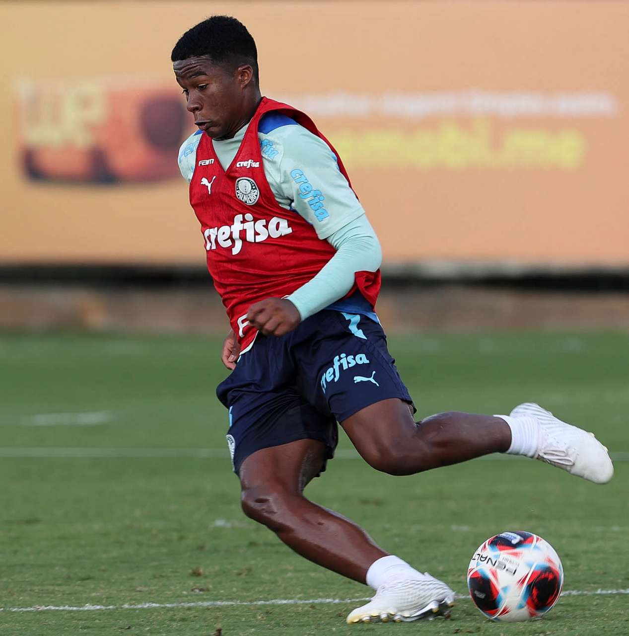 O jogador Endrick, da SE Palmeiras, durante treinamento, na Academia de Futebol. (Foto: Cesar Greco/Palmeiras/by Canon)