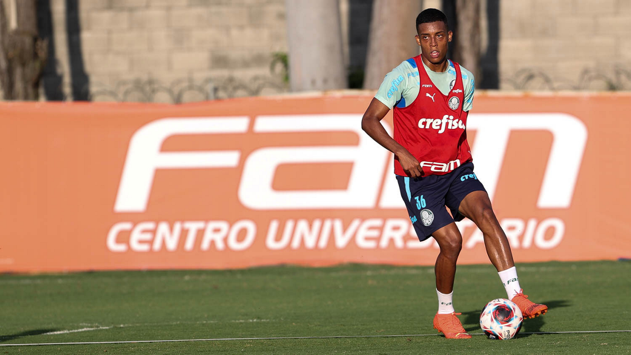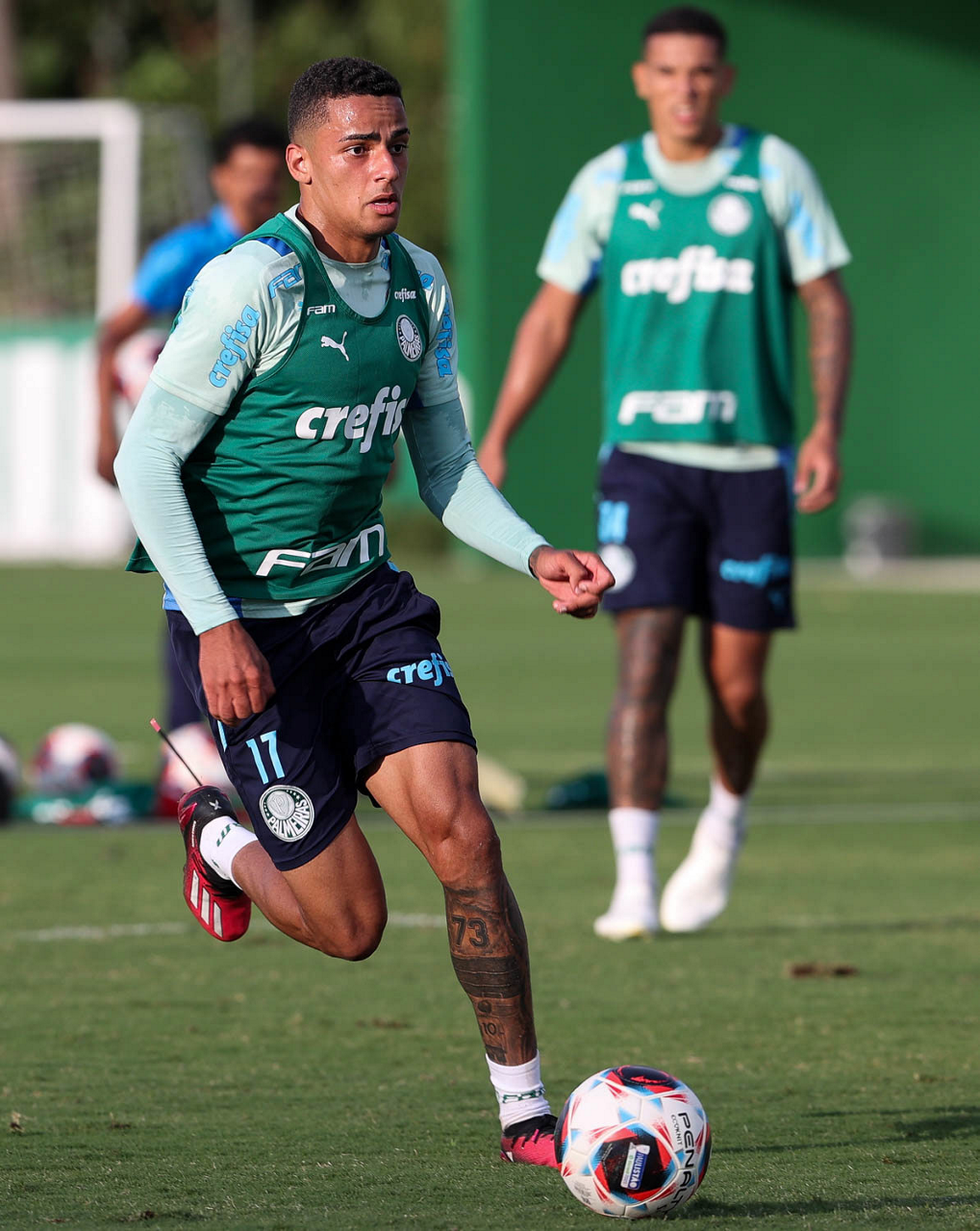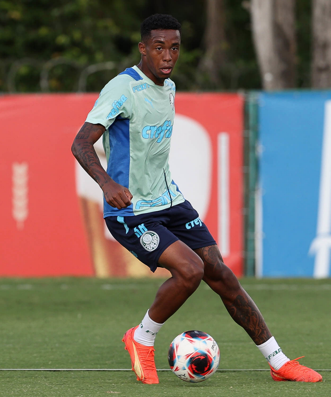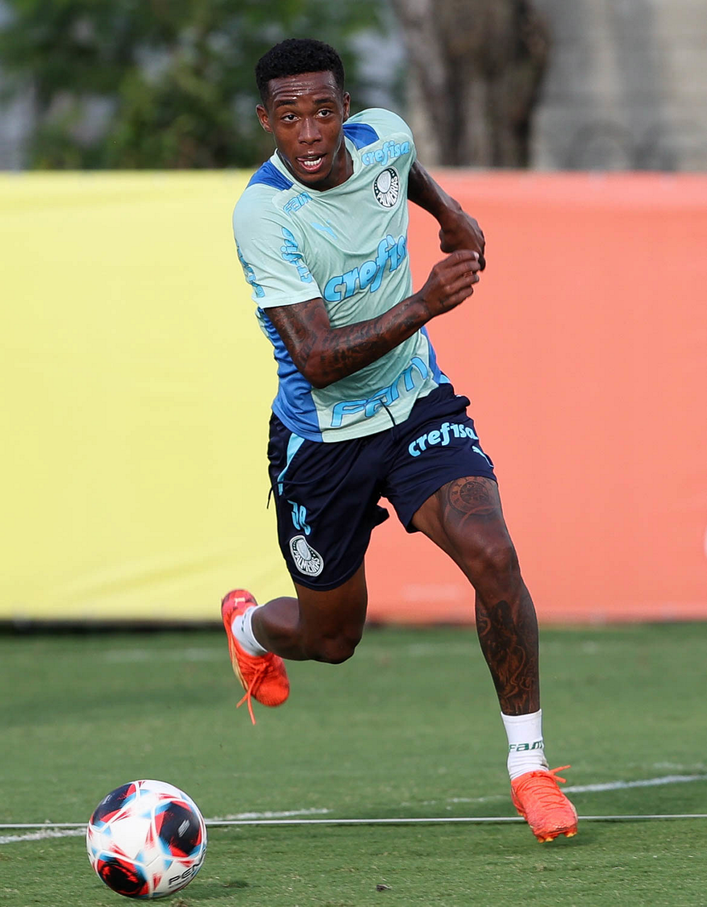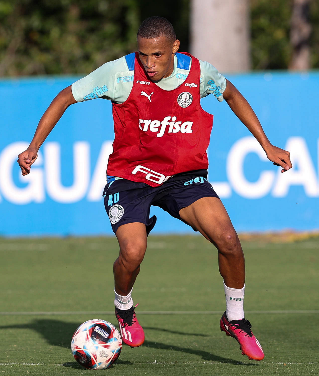 O jogador Endrick, da SE Palmeiras, durante treinamento, na Academia de Futebol. (Foto: Cesar Greco/Palmeiras/by Canon)