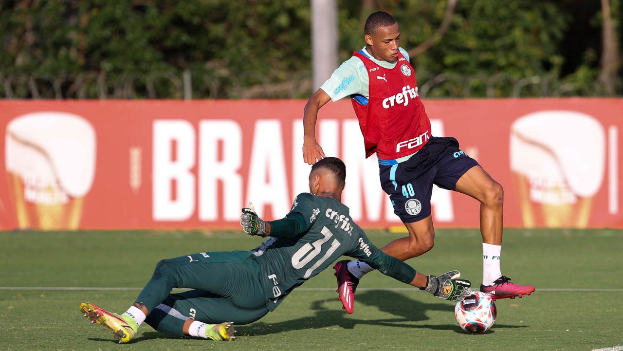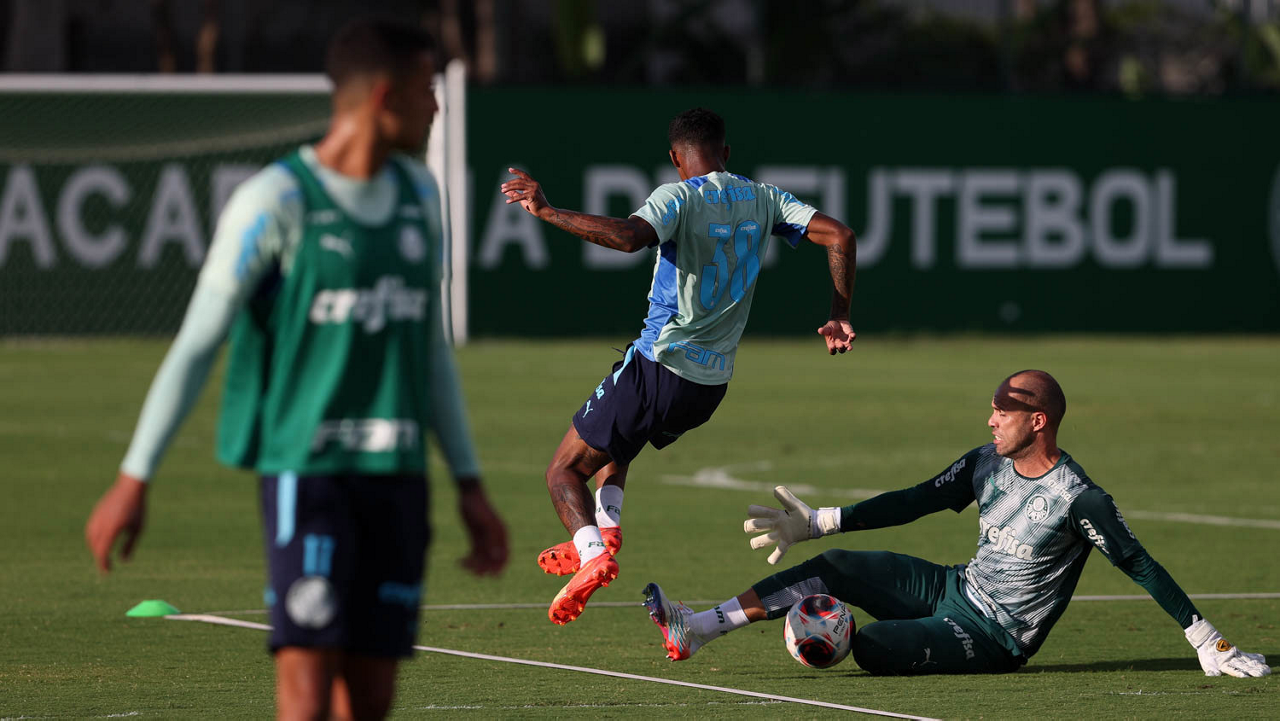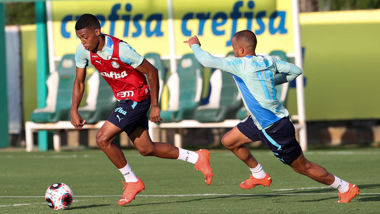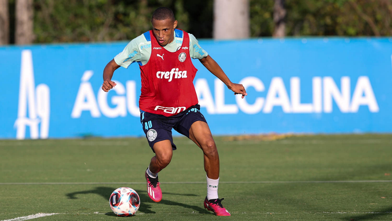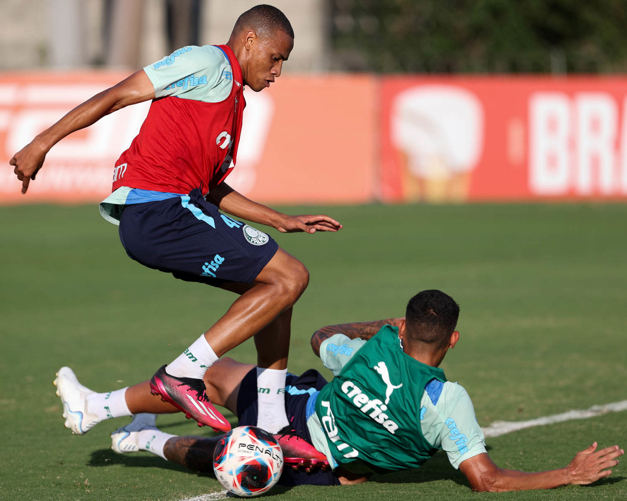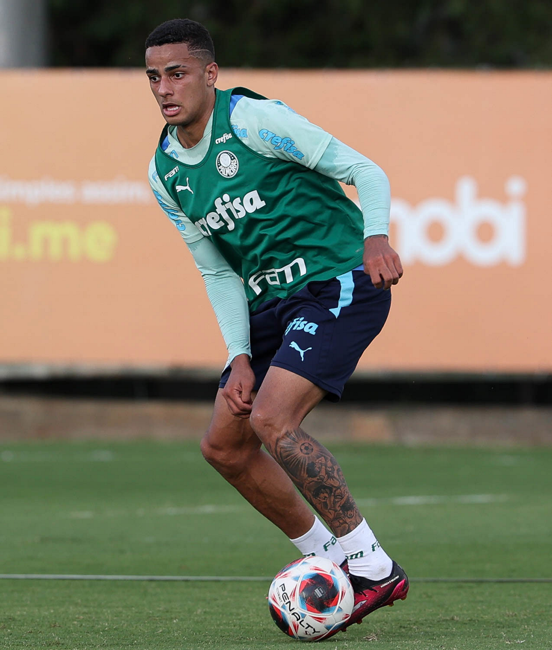 O jogador Endrick, da SE Palmeiras, durante treinamento, na Academia de Futebol. (Foto: Cesar Greco/Palmeiras/by Canon)