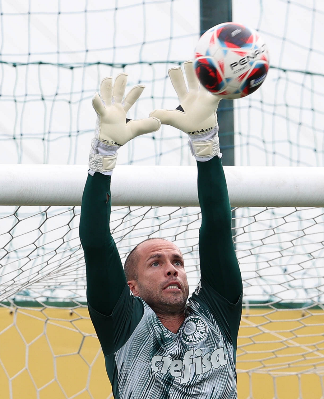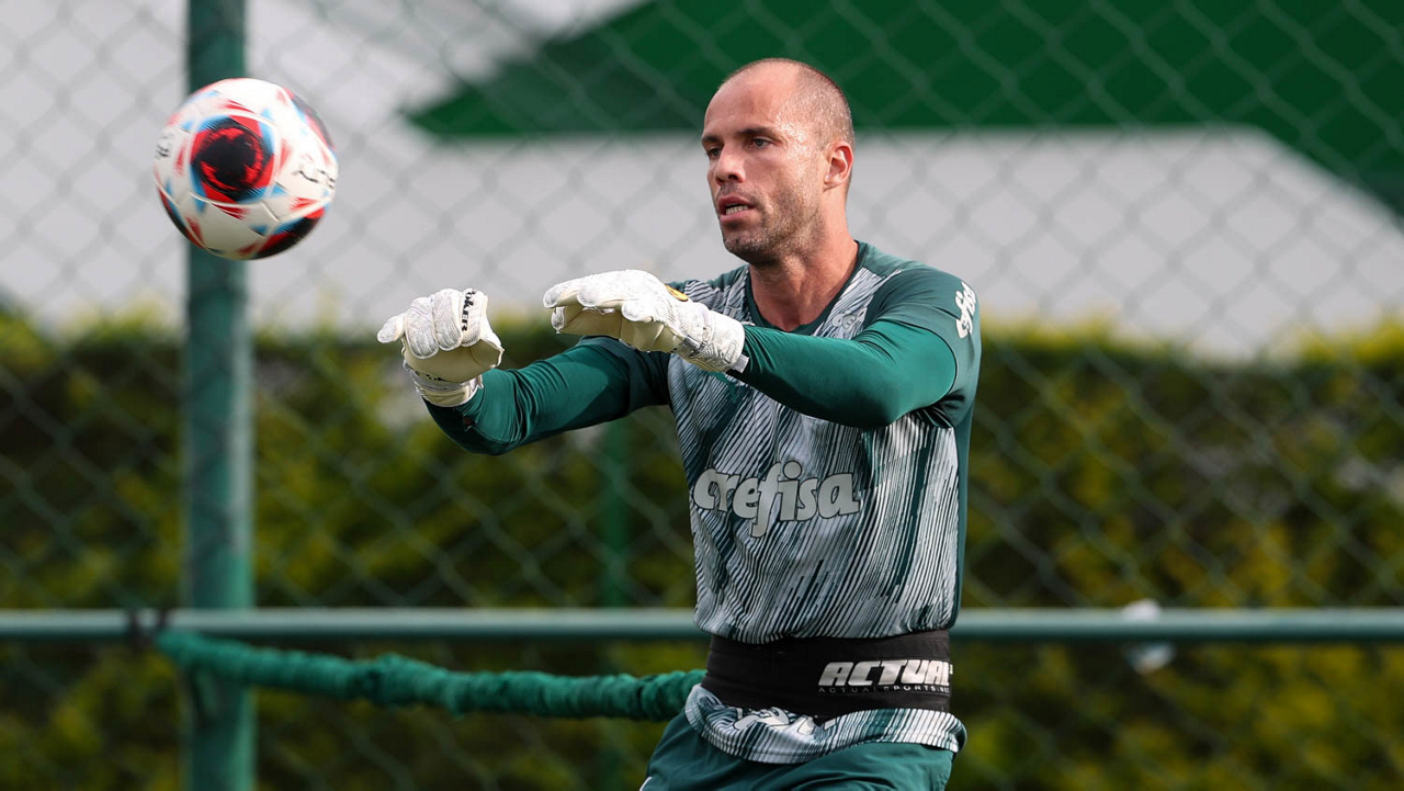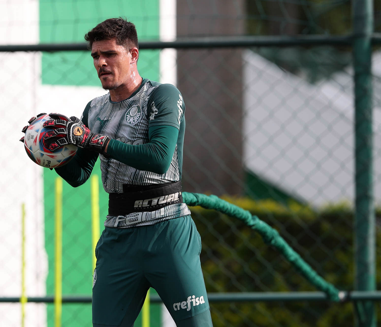 O goleiro Weverton, da SE Palmeiras, durante treinamento, na Academia de Futebol. (Foto: Cesar Greco/Palmeiras/by Canon)
